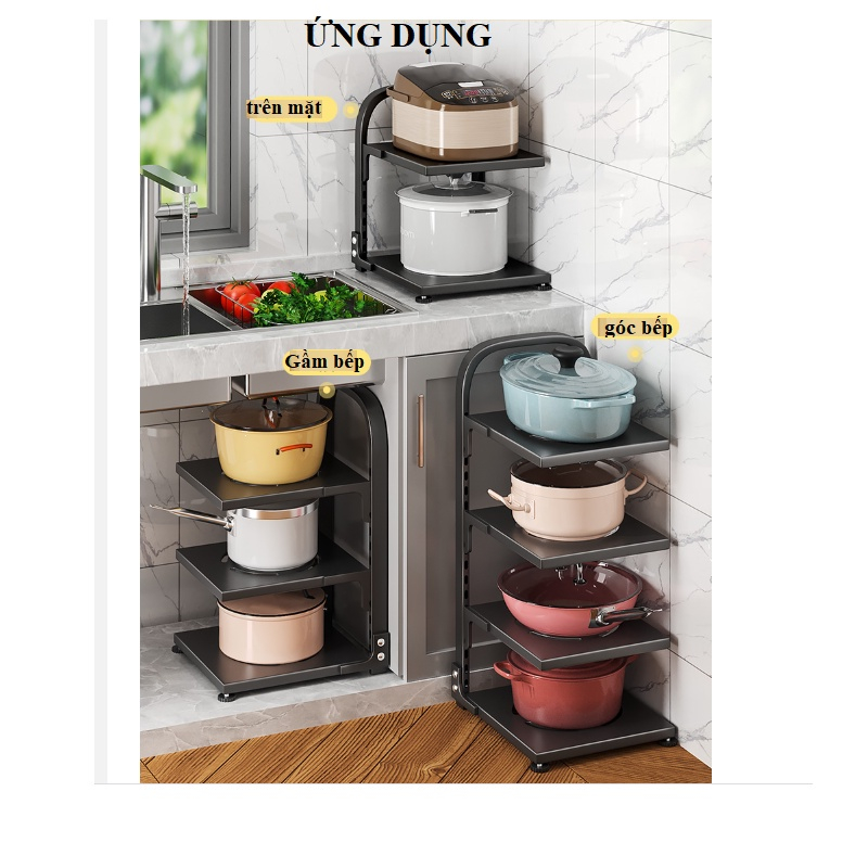 Kệ để xoong nồi chảo 2,3,4 tầng, kệ để đồ gầm bếp và tủ bếp thông minh