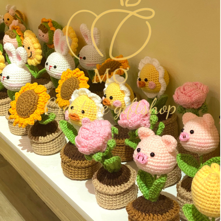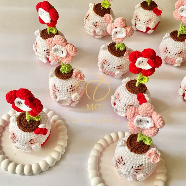 Chậu hoa len trang trí decor phòng nhiều mẫu dễ thương - Quà Tặng handmade [Hàng làm sẵn]