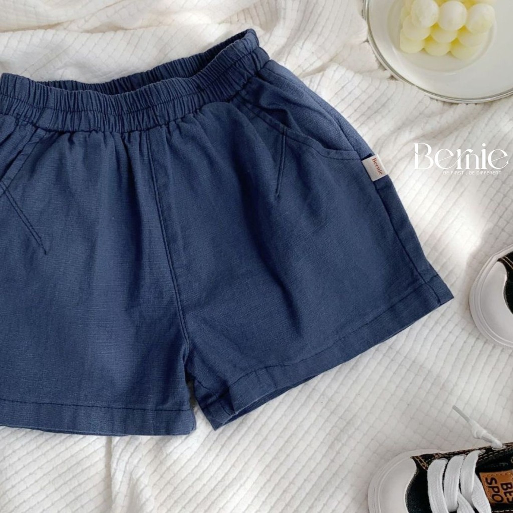 Quần short đùi ngắn màu xanh than cho bé trai bé gái unisex BERNIE phong cách hàn quốc 7kg đến 30kg