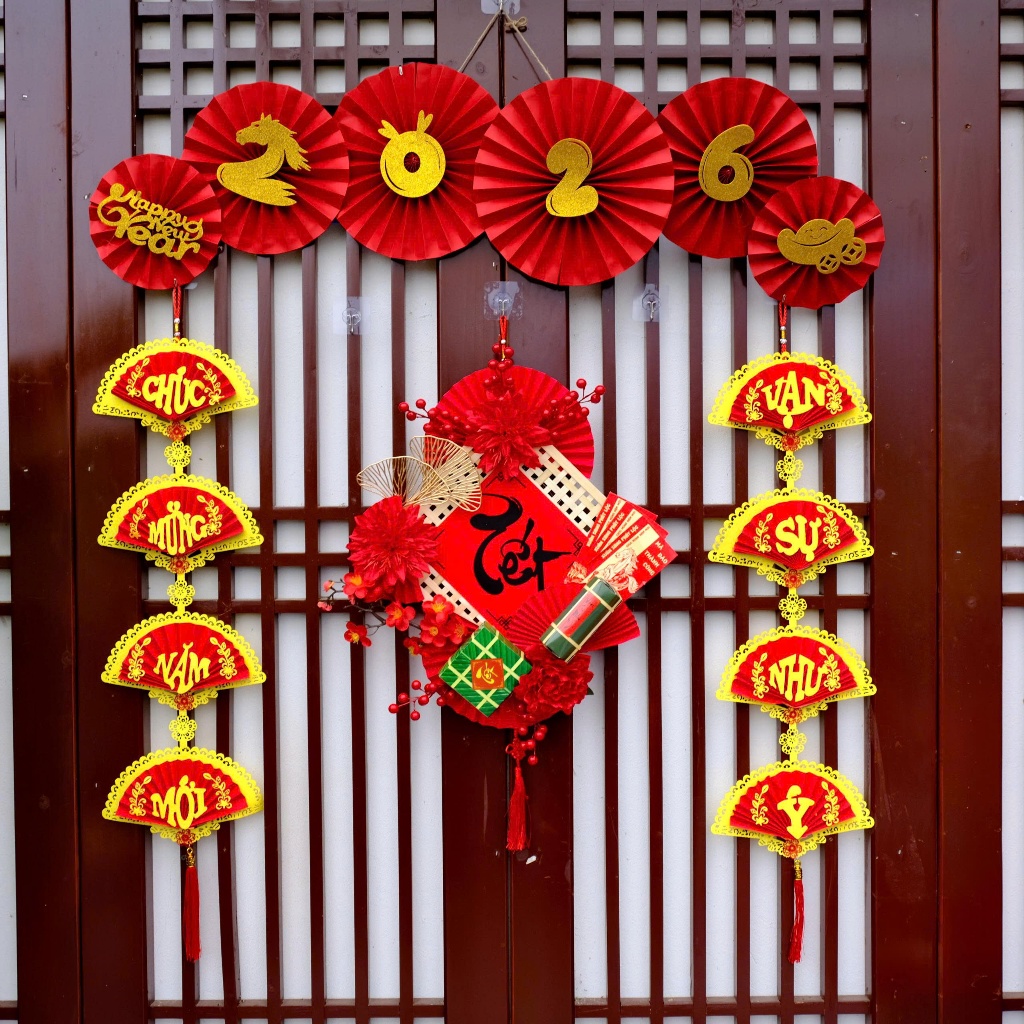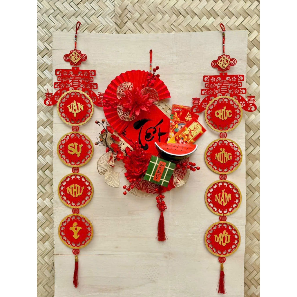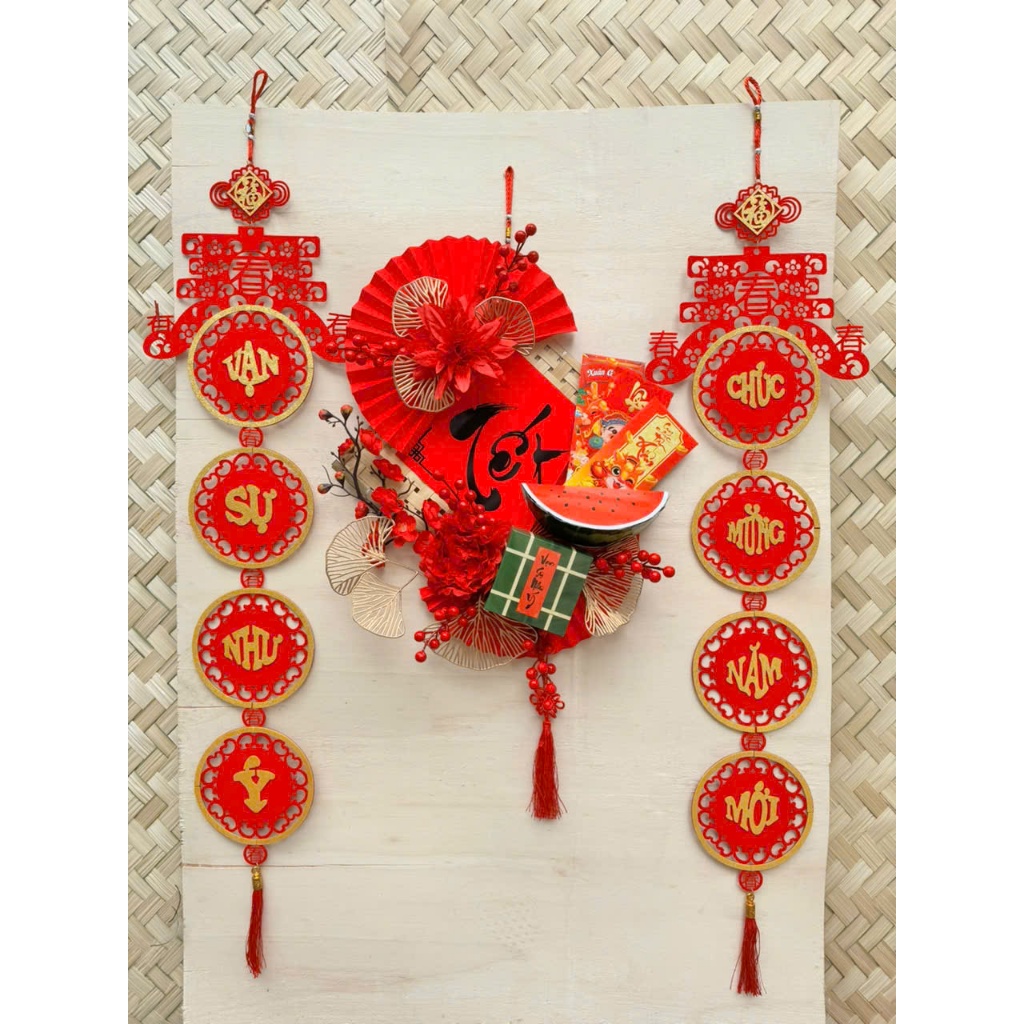 Set tết ngắn kèm câu đối, phụ kiện trang trí tết đầy đủ đẹp mẫu mới năm 2026