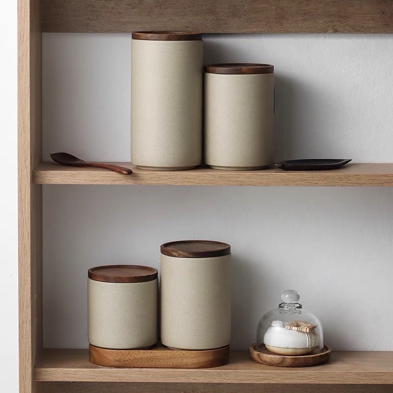 Set lọ gốm đựng gia vị đồ khô nhà bếp tiện dụng phong cách Nhật Bản