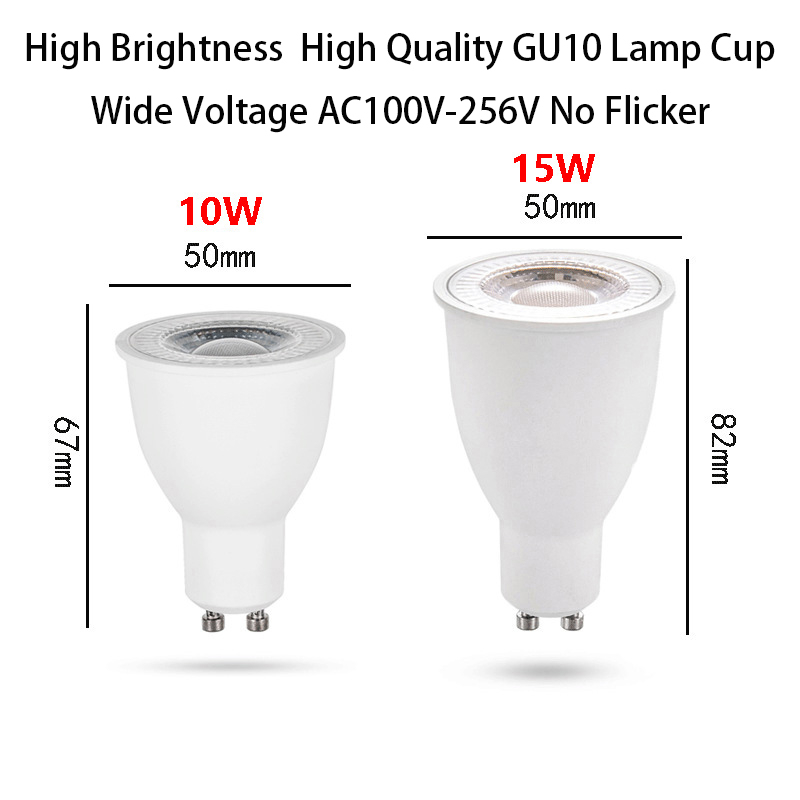 Bóng đèn Led 10W 15W GU10 AC100-265V Đèn ngủ miễn phí nhấp nháy siêu sáng Năng lượng với đèn che ống kính PC cho phòng ngủ Mát ấm áp Màu trắng trung tính