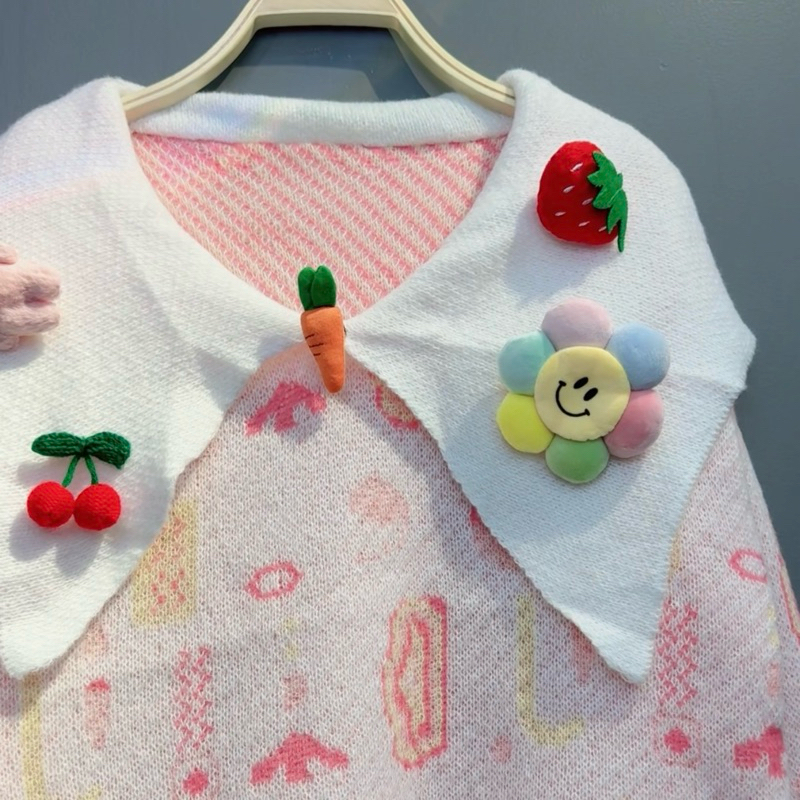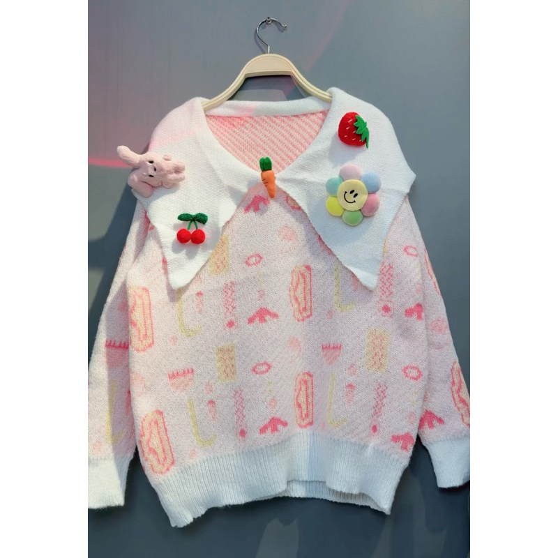 Áo len nữ họa tiết form rộng cổ bẻ đính thú nhồi bông! (có sẵn, hình thật) THẢO NGỌC STORE