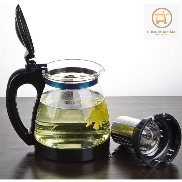 Bình Lọc Trà Thủy Tinh 1300ml Sang Trọng Có Lỗ Lọc Trà Inox Cùng Mua Sắm Ấm Lọc Trà