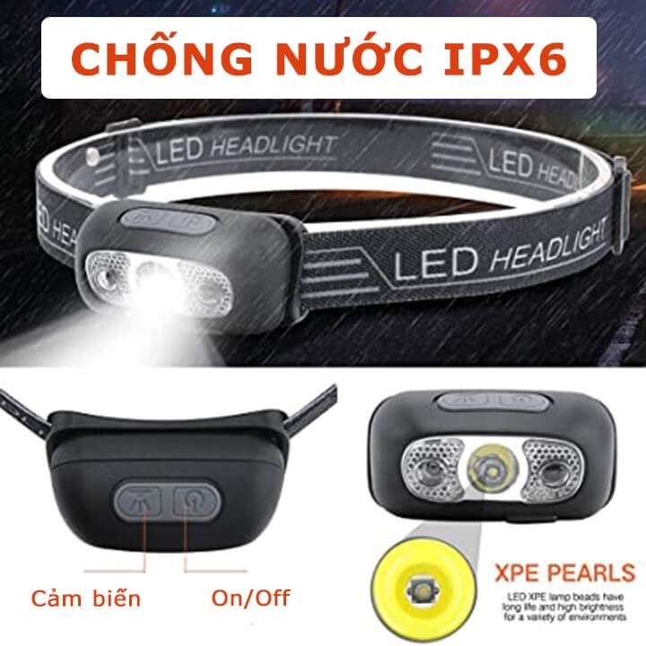 Đèn pin đội đầu siêu sáng cảm ứng bằng tay 1 bóng LED, chống thấm nước IPX6, đèn đội đầu cảm biến pin trâu