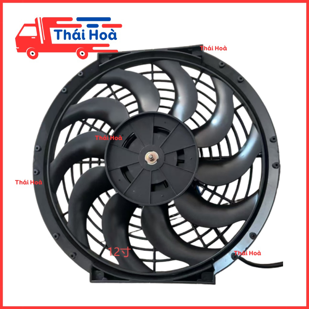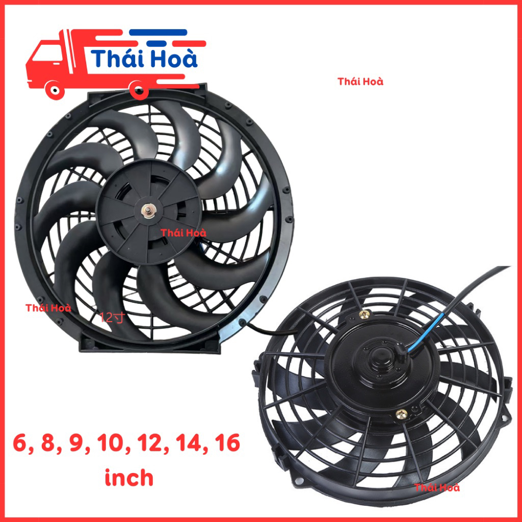 Quạt két nước dàn nóng điều hoà 2 chiều 12v 24v ô tô xe tải máy xúc máy cày 6 8 9 10 12 14 16 inch