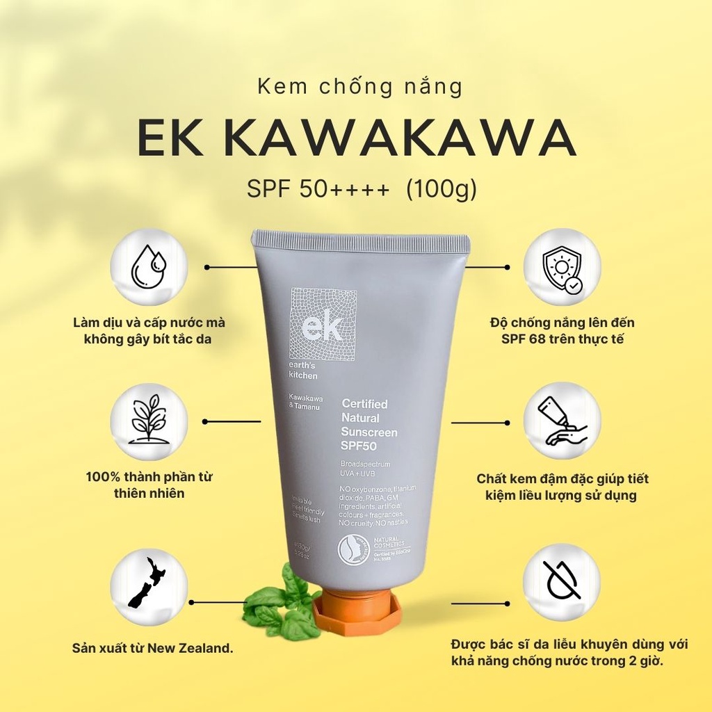 Kem chống nắng thuần tự nhiên EK Kawakawa & Tamanu 3 trong 1, cấp ẩm phục hồi SPF50 150g Dr Chubby