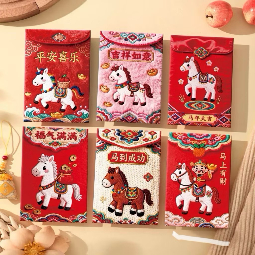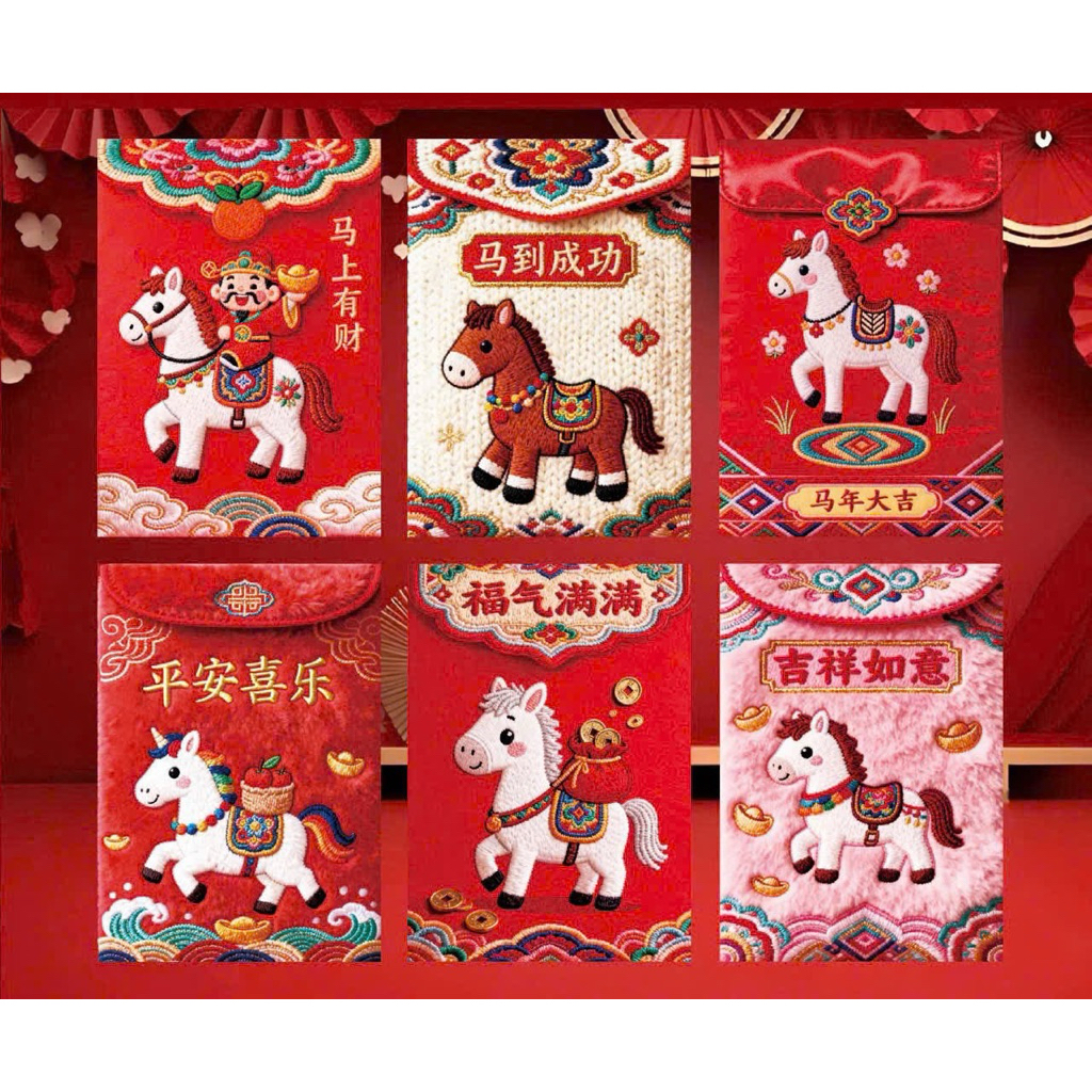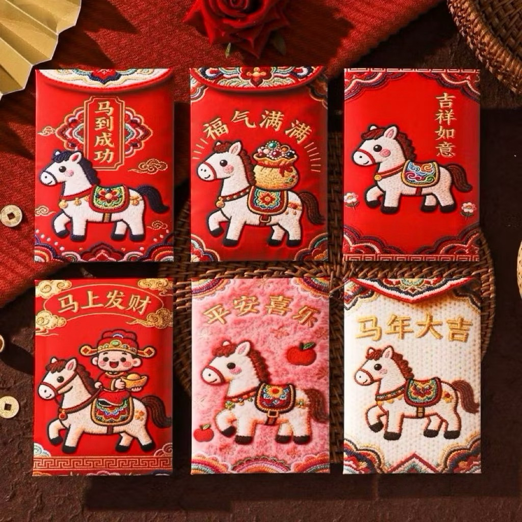 Combo 60 chiếc lì xì in 5D hình ngựa thổ cẩm bản vuông ngắn, lì xì Tết 2026
