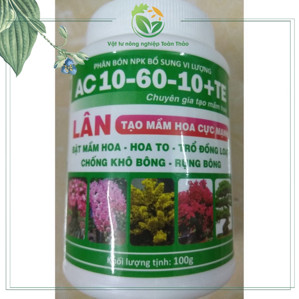 Siêu Lân 10-60-10+TE tạo mầm hoa, tạo nụ kim cực mạnh, dưỡng nụ hoa to. Có bổ sung thêm vi lượng