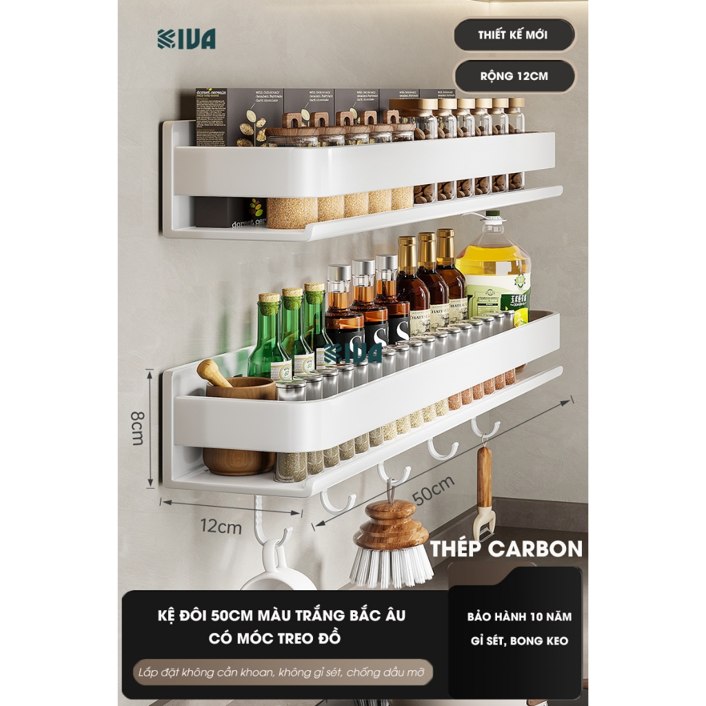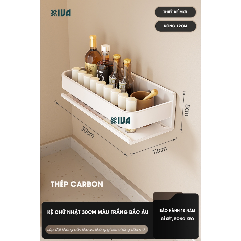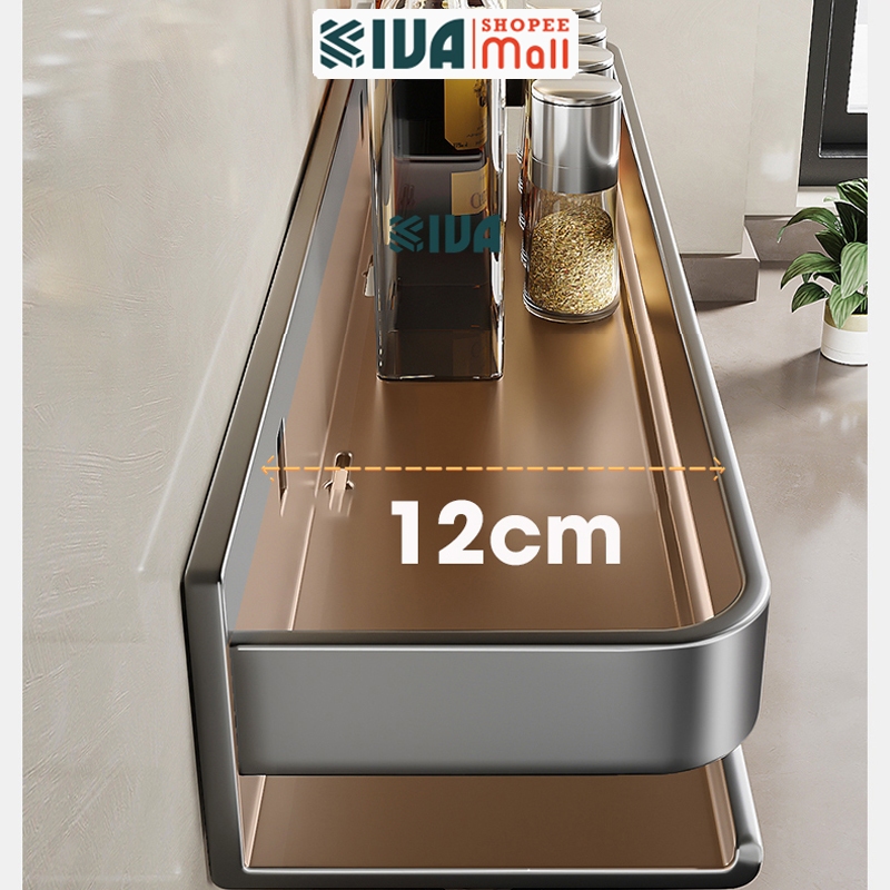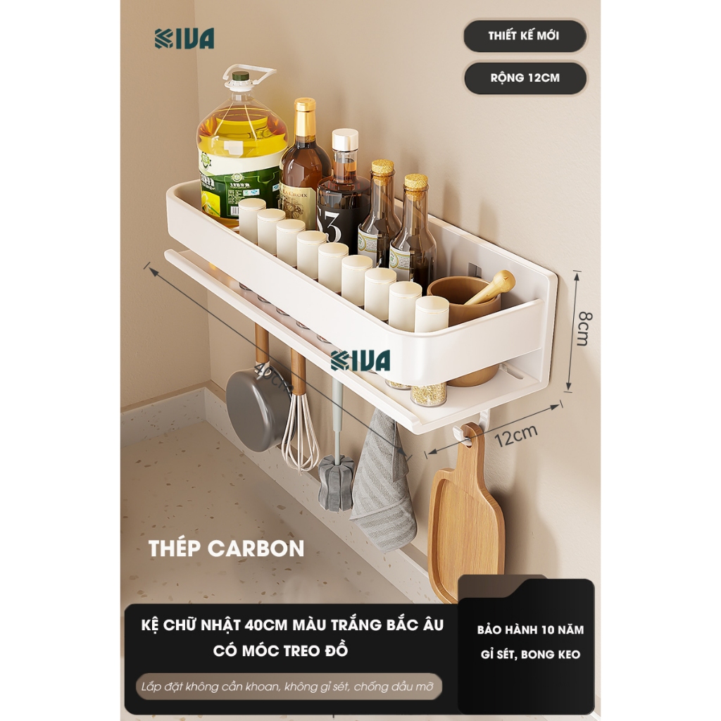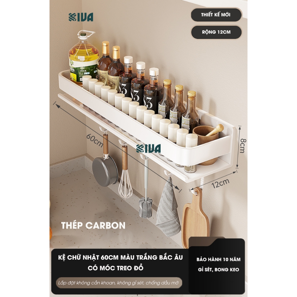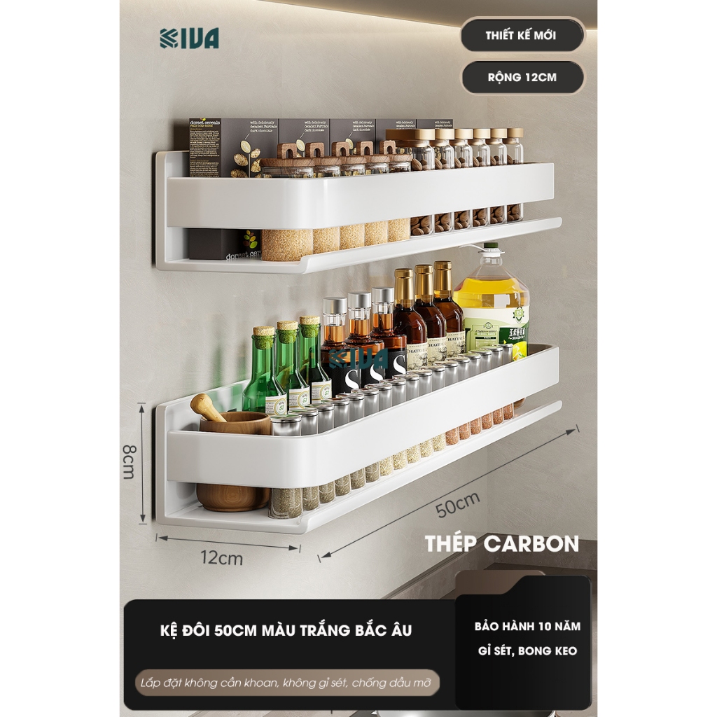 Kệ đựng, để gia vị nhà bếp treo tường KIVa, chất liệu thép Carbon, lắp đặt dán tường, khoan tường.