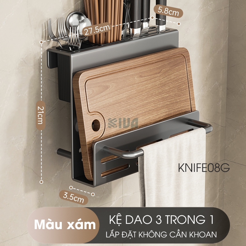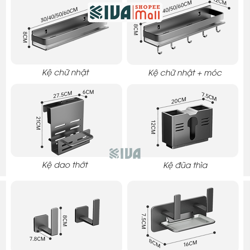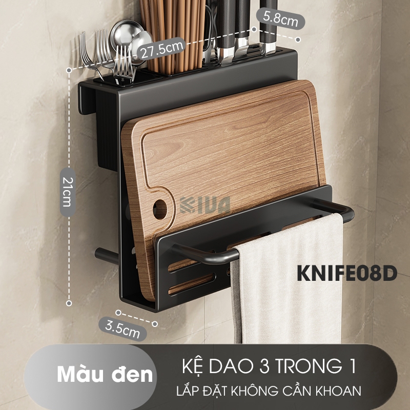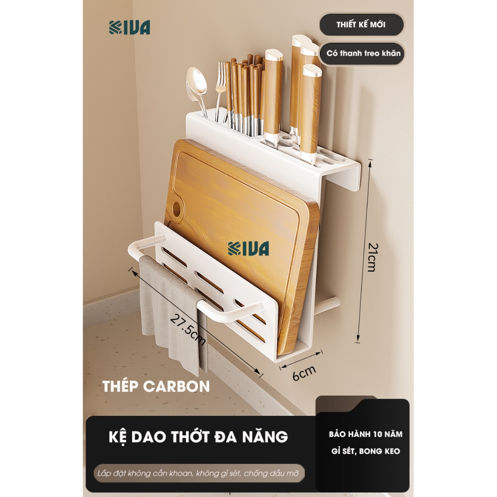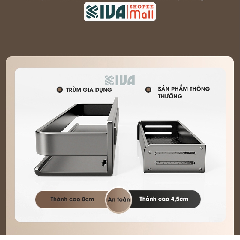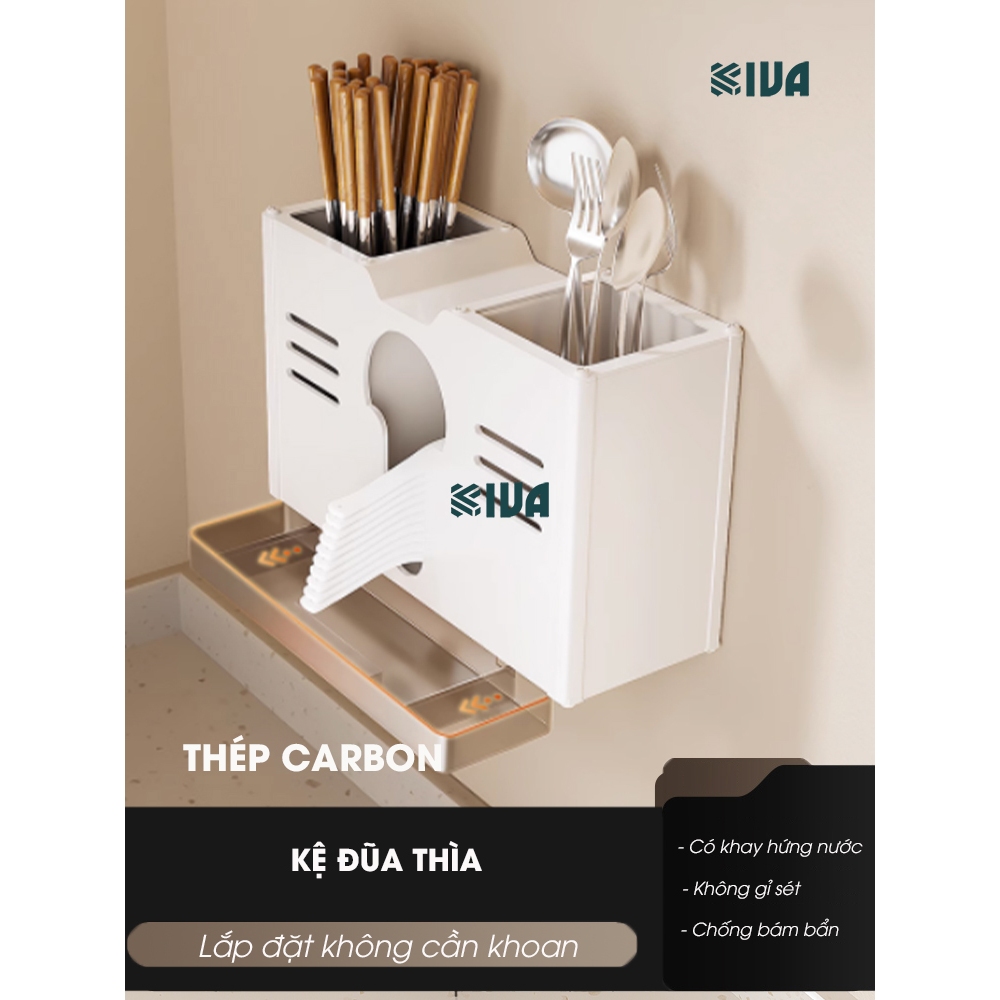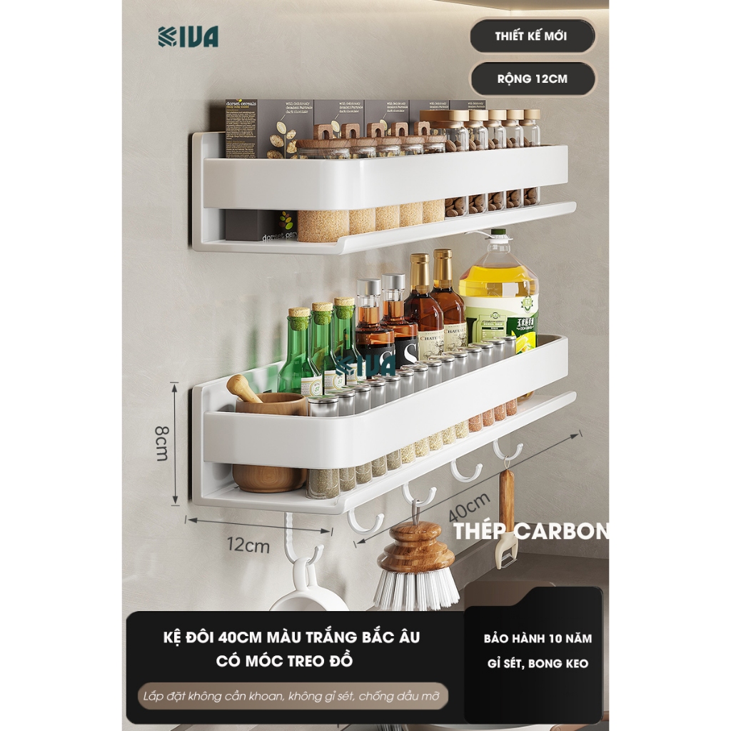 Kệ đựng, để gia vị nhà bếp treo tường KIVa, chất liệu thép Carbon, lắp đặt dán tường, khoan tường.