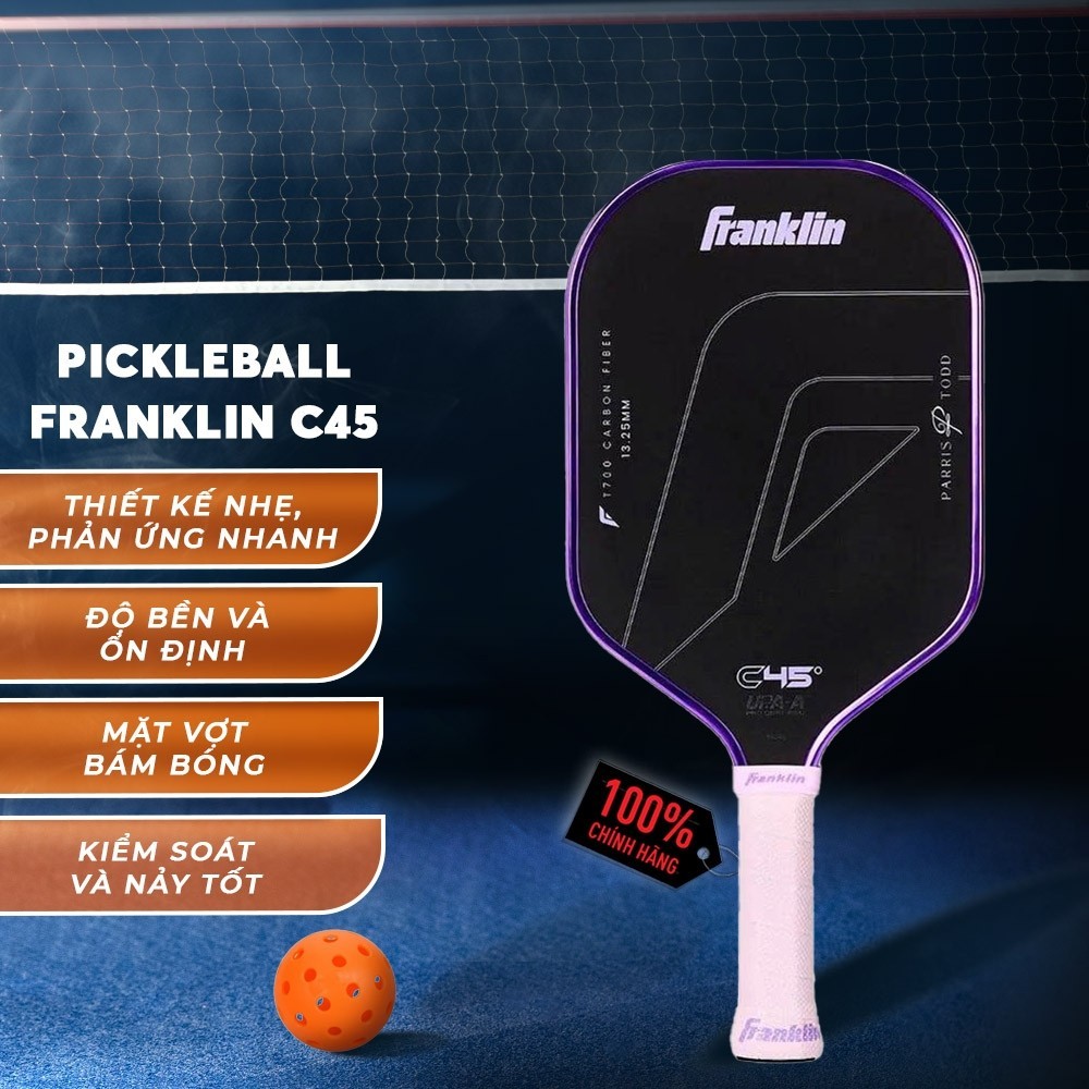 Vợt Pickleball Franklin C45 13.2mm Hồng Parris Todd Chính Hãng - Ổn Định - Bền Nhẹ - Tối Ưu Lối Đánh - Giảm Rung Tốt