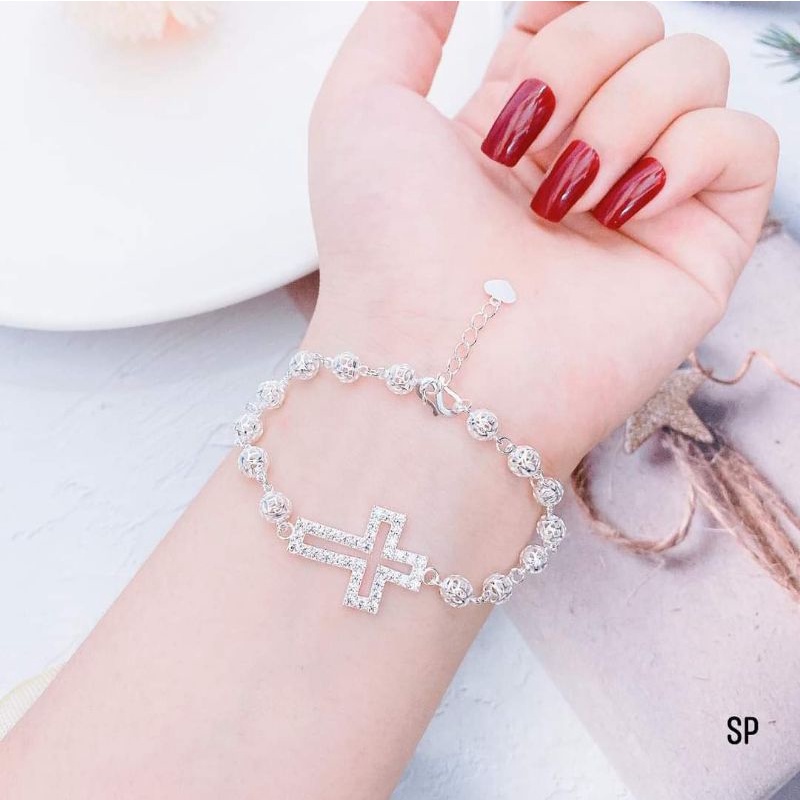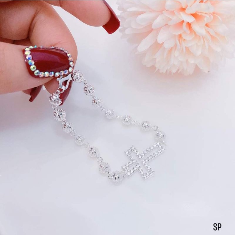 Lắc tay mân côi thánh giá tràng hạt bạc