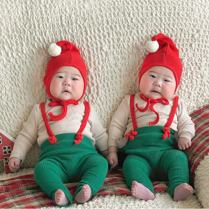 Quần áo Giáng sinh trẻ em mùa thu, quần yếm co giãn cao cho bé, phong cách dễ thương, mũ