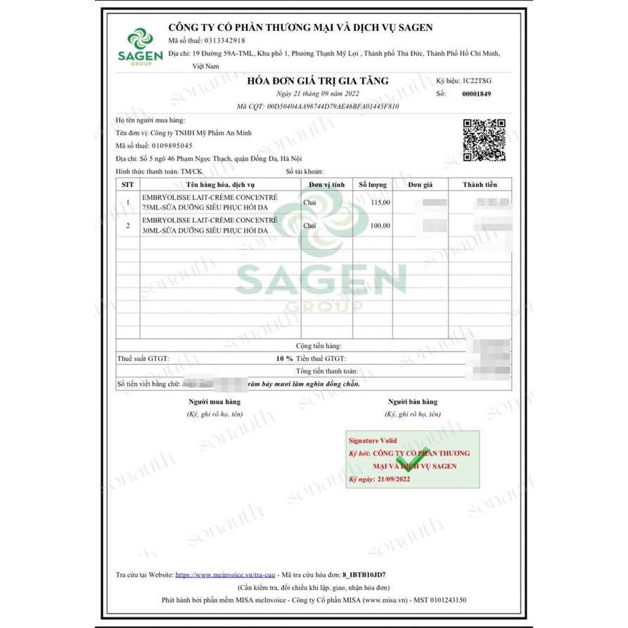 Kem dưỡng Embryolisse Lait Creme Concentre (Nhập khẩu chính hãng)