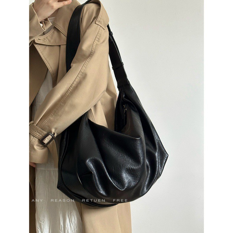 IELGY Da Mềm Dung Tích Lớn Đen Bánh Bao Túi Retro Cao Cấp Một Vai Messenger Túi Tote