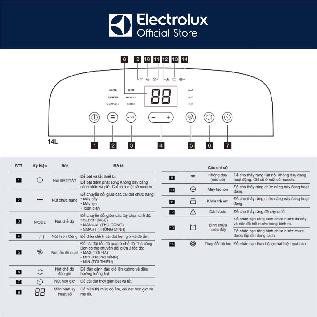 Máy hút ẩm kết hợp lọc không khí Electrlolux UltimateHome 700 27L cho phòng 58m² EDH14TRBD2
