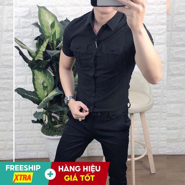 Áo sơ mi nam NMC 2 túi ngực vải đũi cao cấp