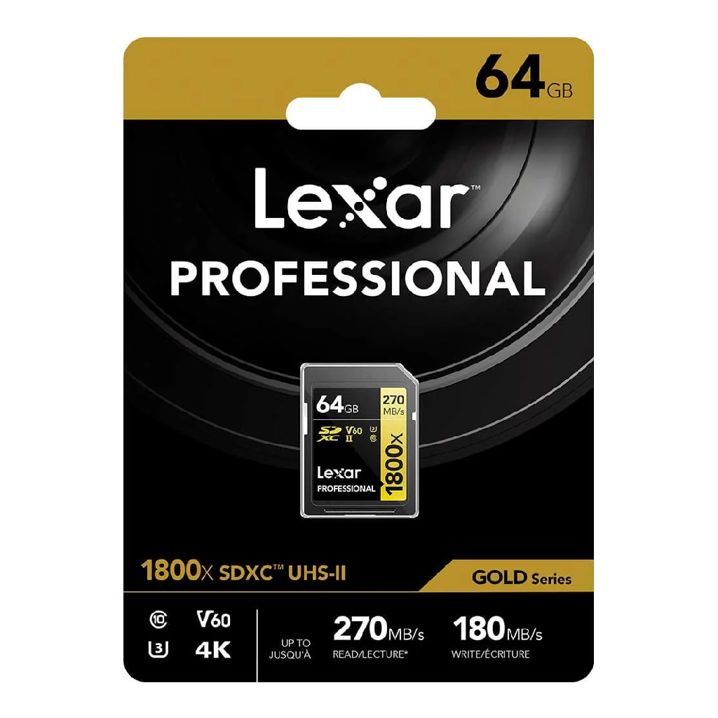 Thẻ nhớ Máy Ảnh SDXC Lexar Professional 1800X 64GB / 128GB / 256GB UHS-II V60 đọc 280MB/s ghi 205MB/s (vàng)