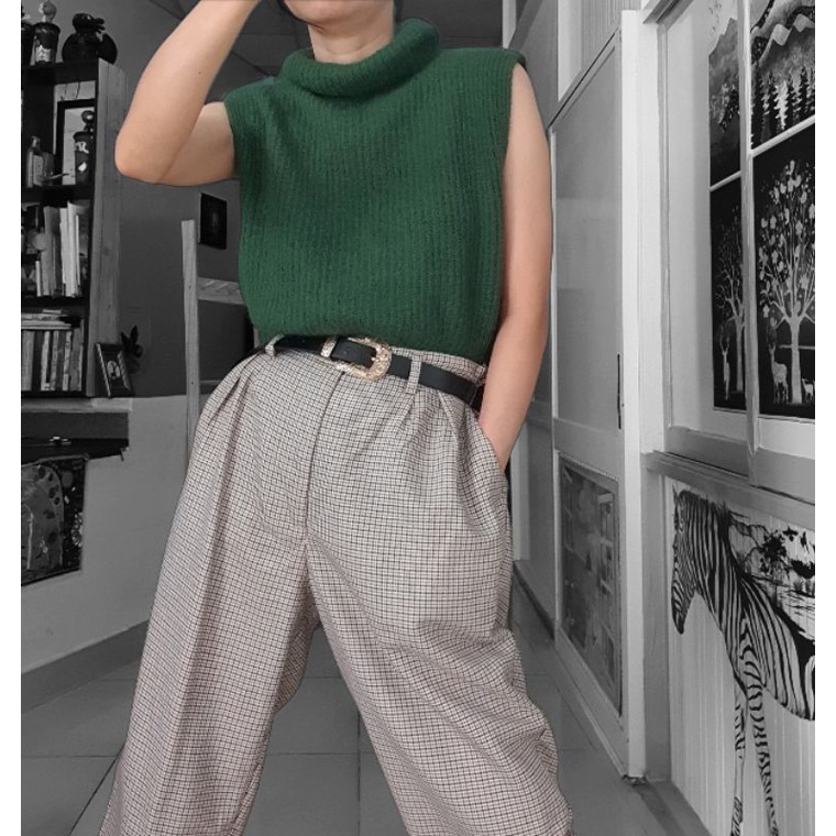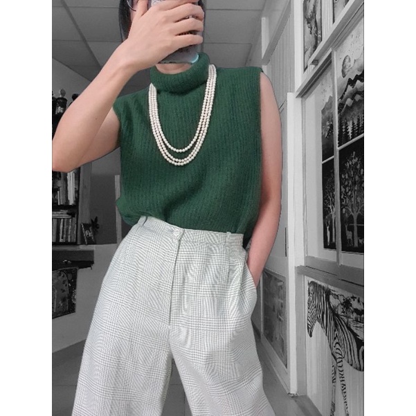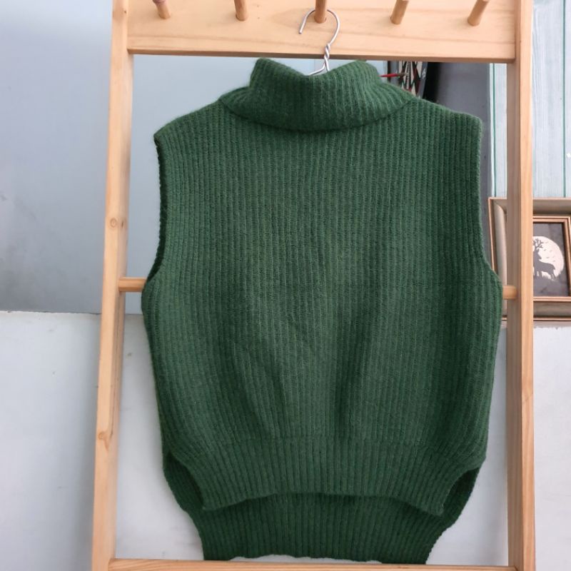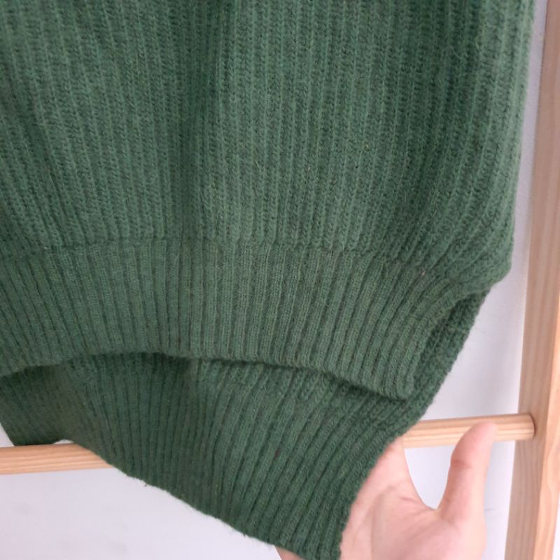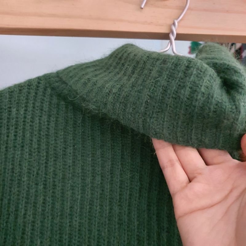 Áo len cổ lọ cao, màu xanh rêu, hàng si