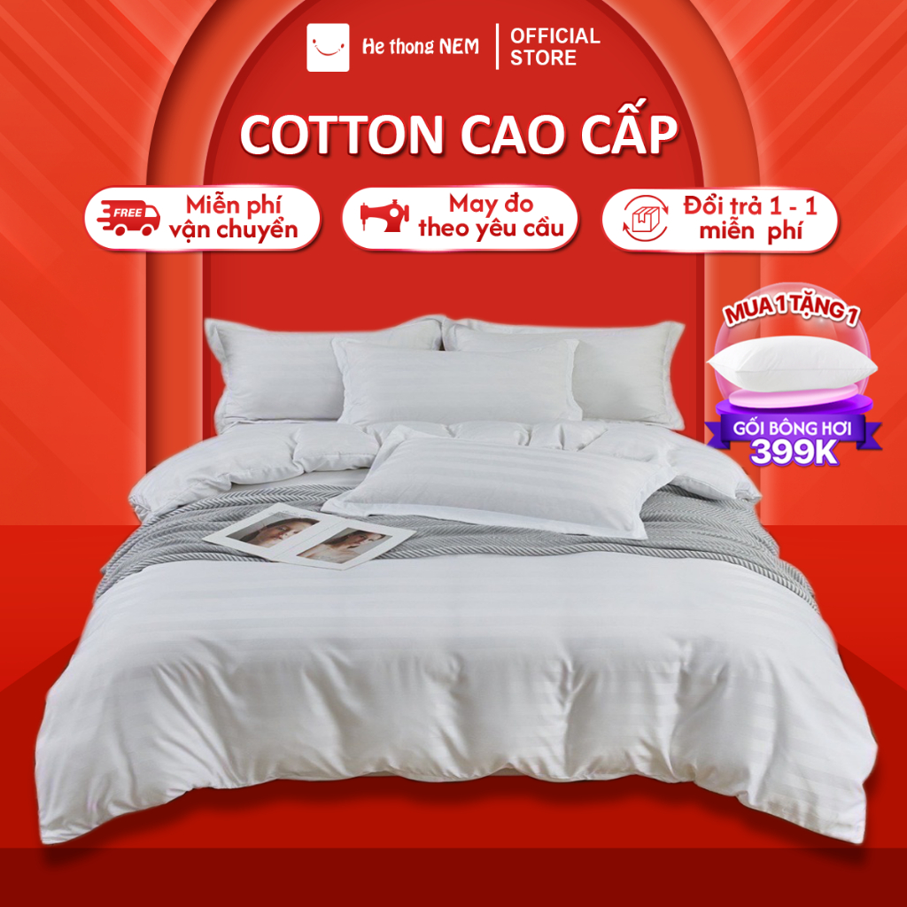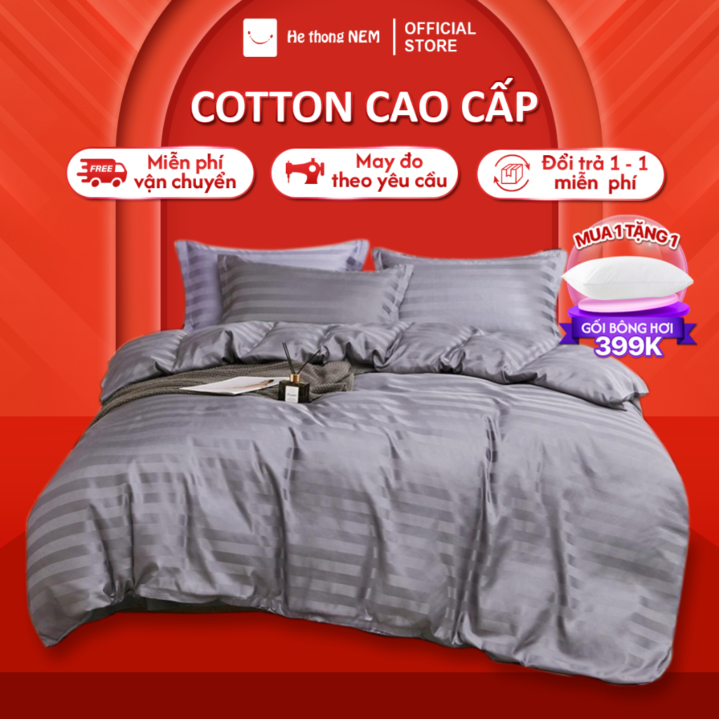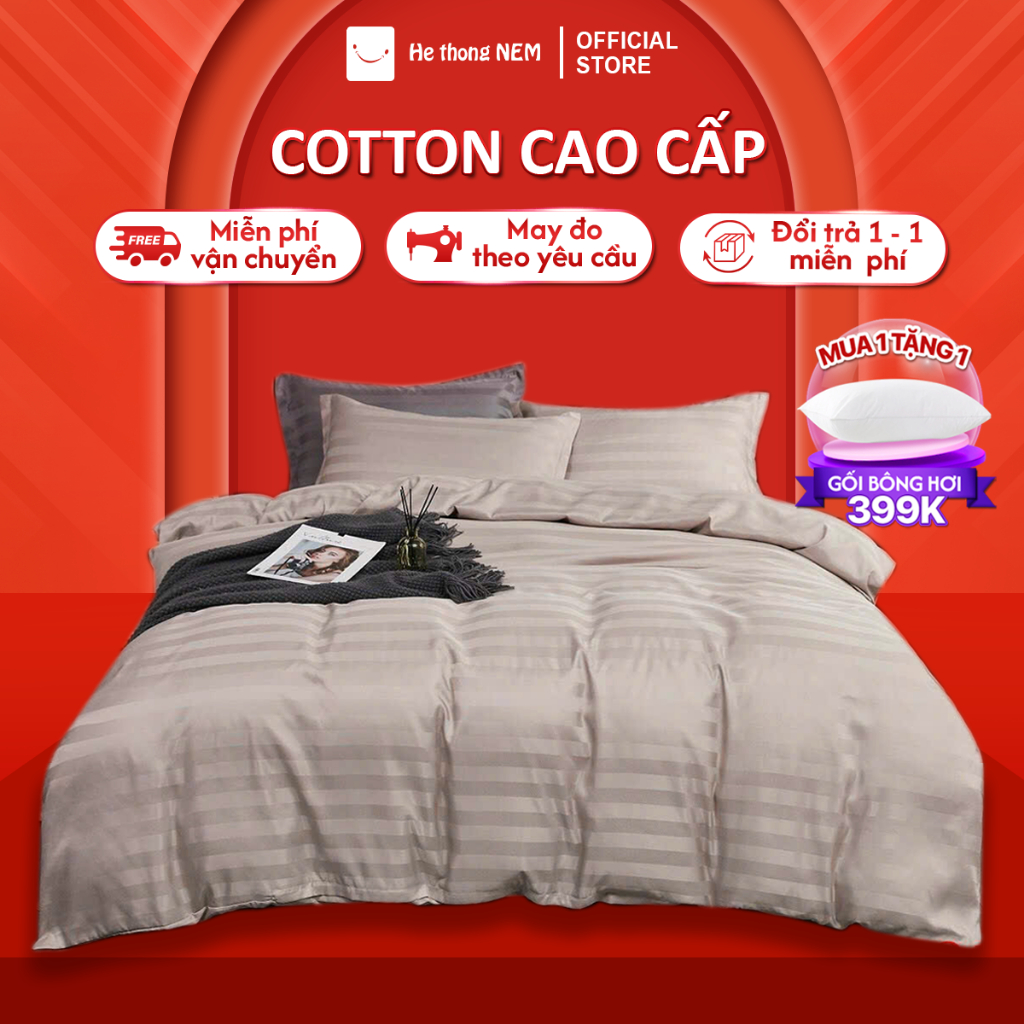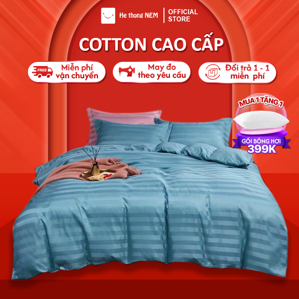 Bộ chăn ga gối đệm 5 món Hệ Thống Nệm cao cấp Set chăn ga gối nệm đệm cotton trải giường vỏ chăn chần bông trải giường