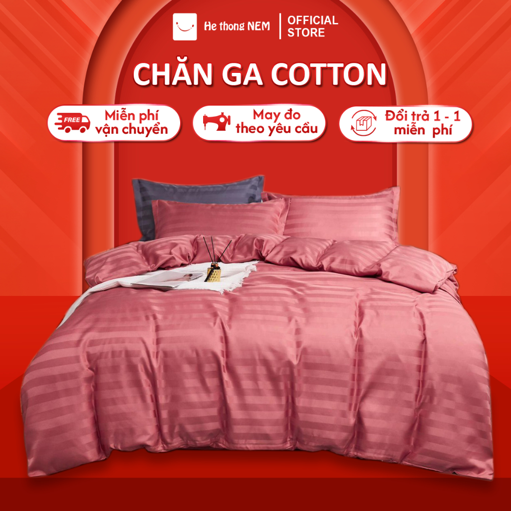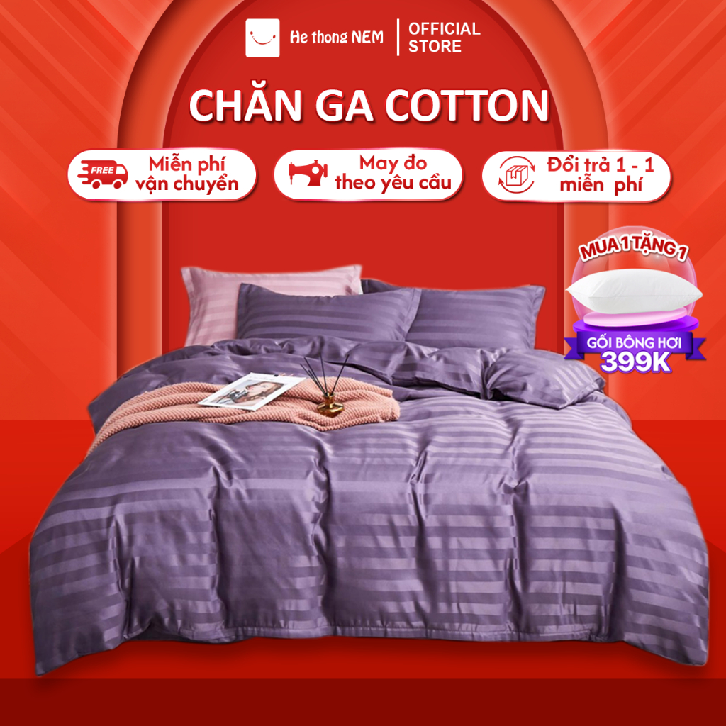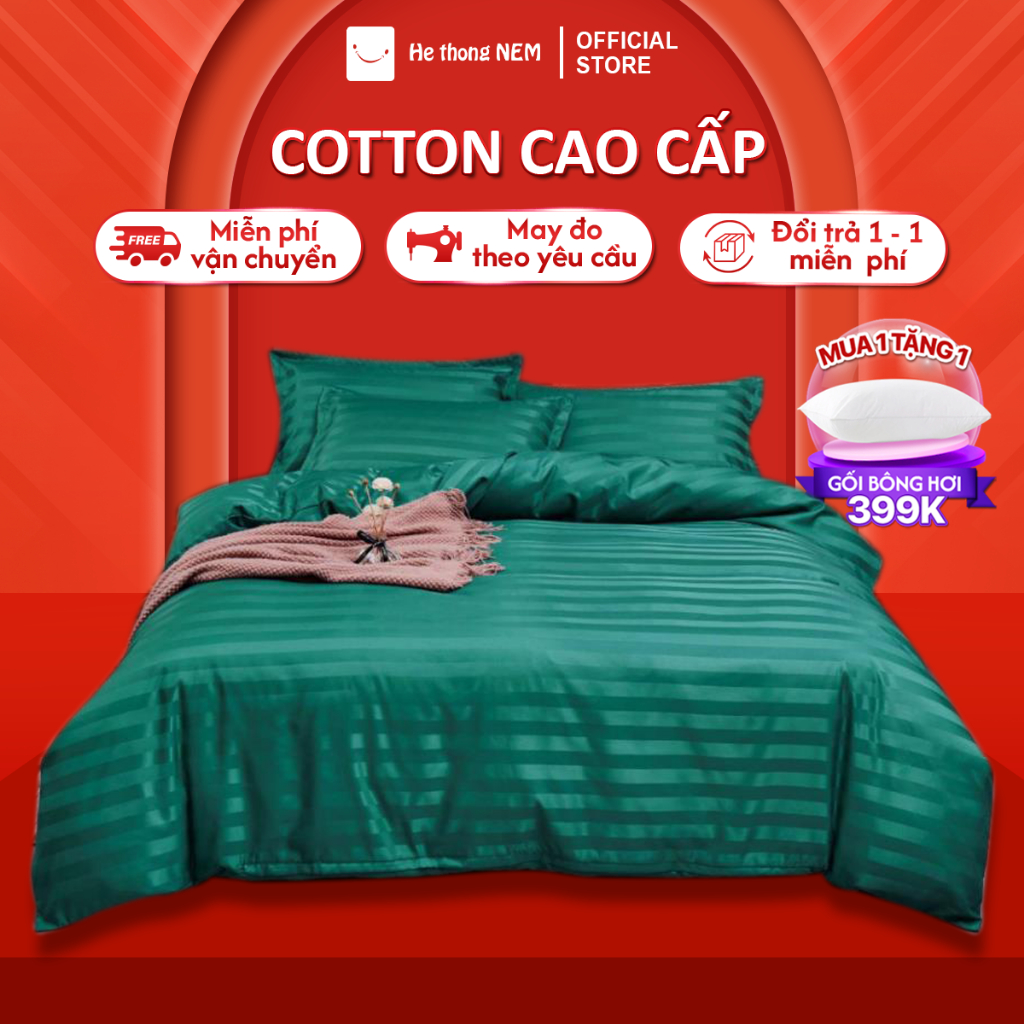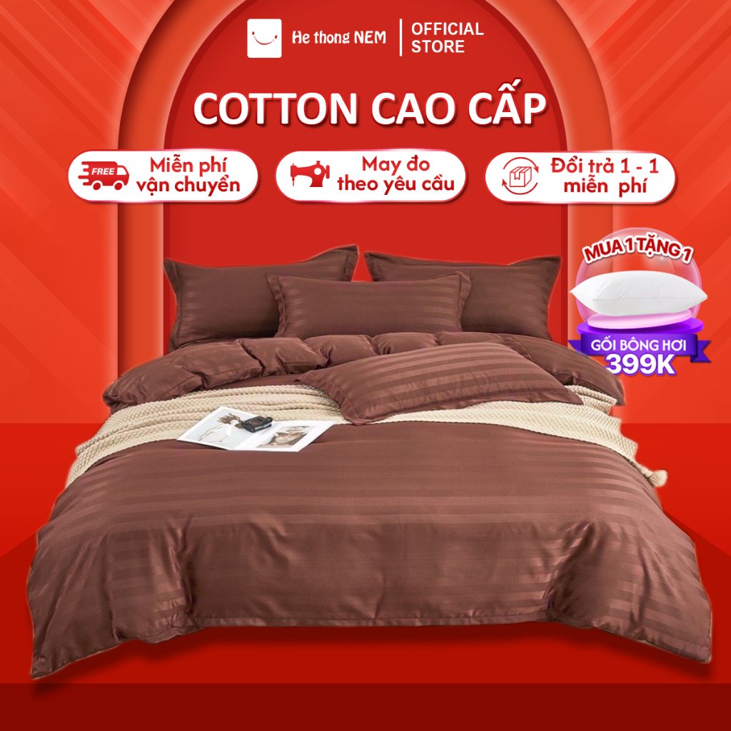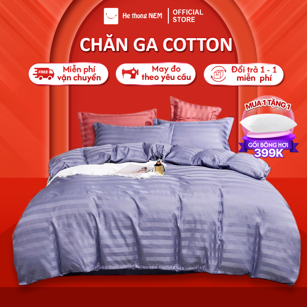 Bộ chăn ga gối đệm 5 món Hệ Thống Nệm cao cấp Set chăn ga gối nệm đệm cotton trải giường vỏ chăn chần bông trải giường