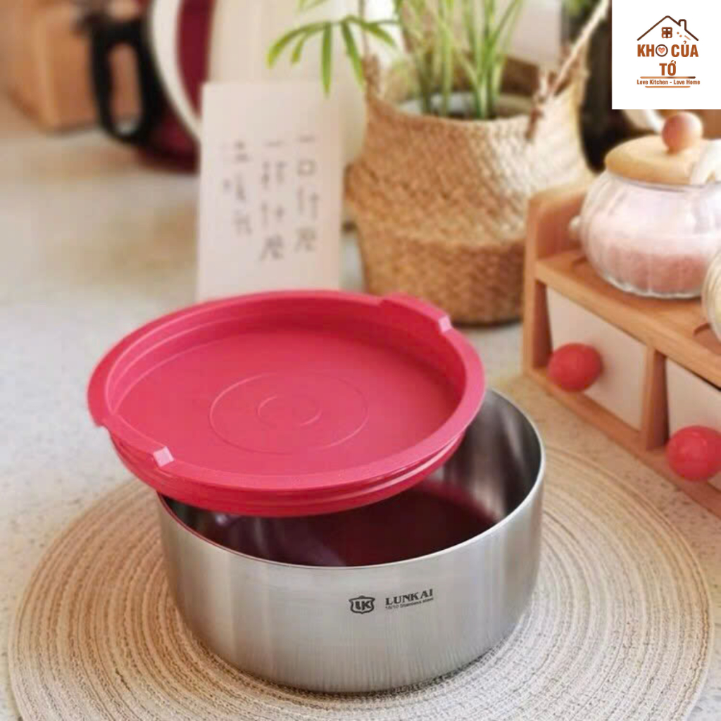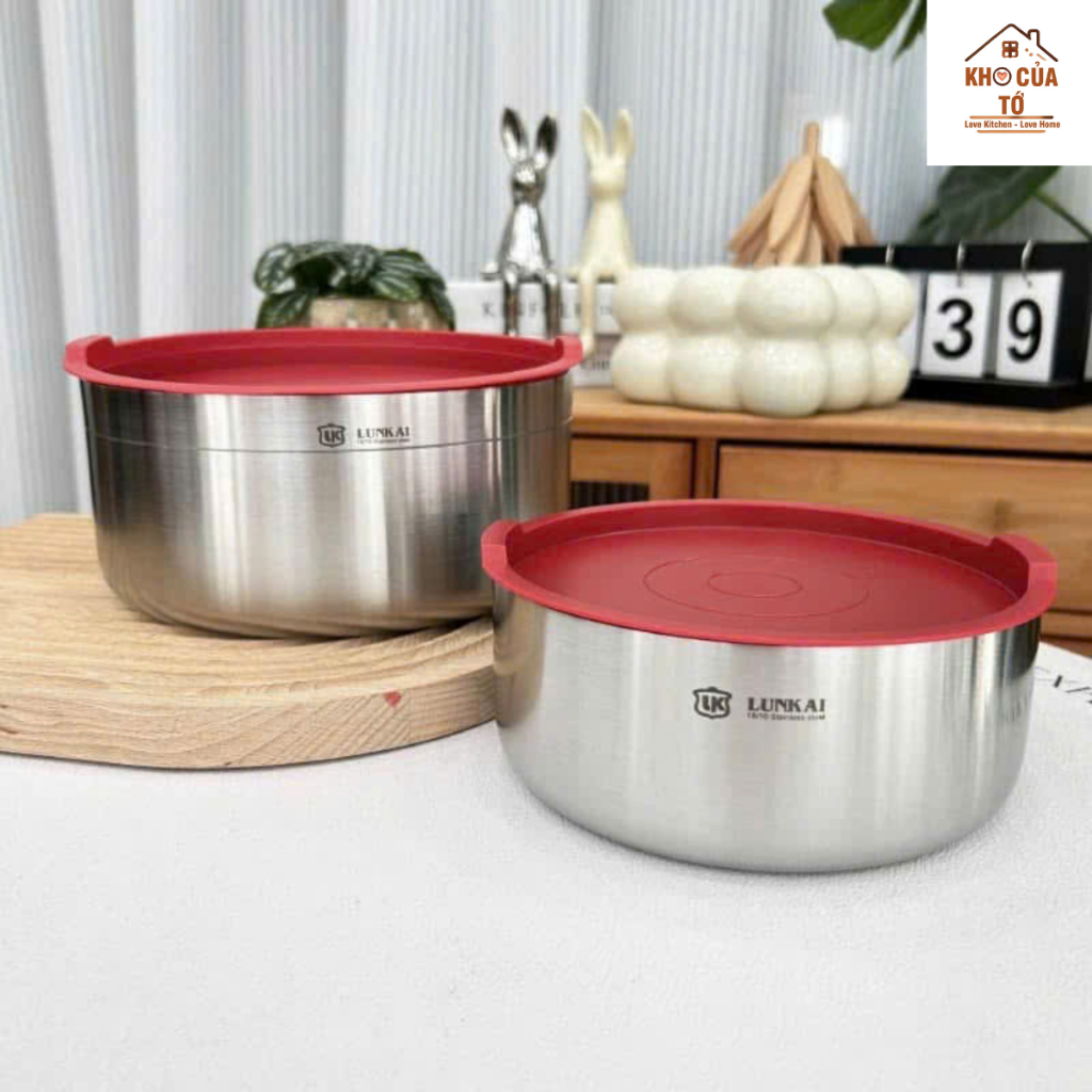 Tô, thố inox Lunkai, đa năng vừa làm tô trộn, vừa làm hộp bảo quản trong tủ lạnh, đun được trên bếp từ lk16, lk20