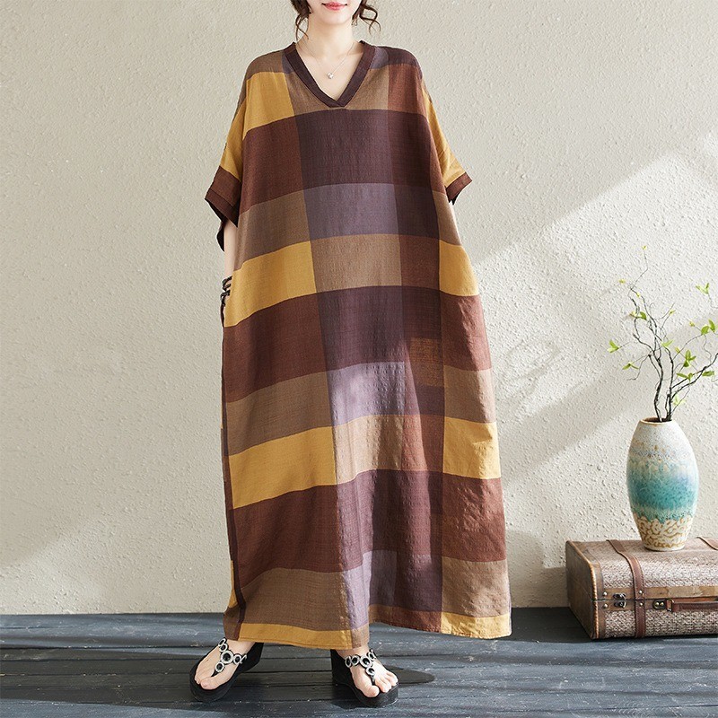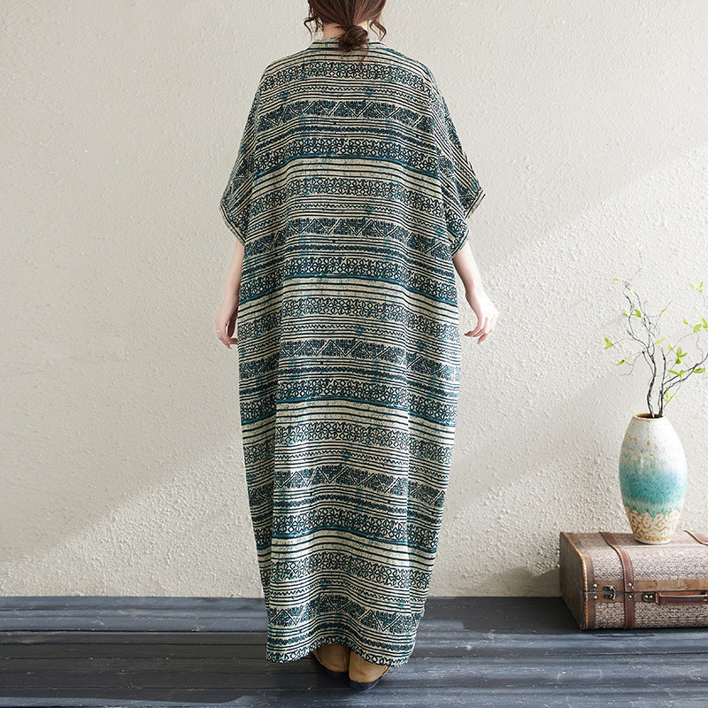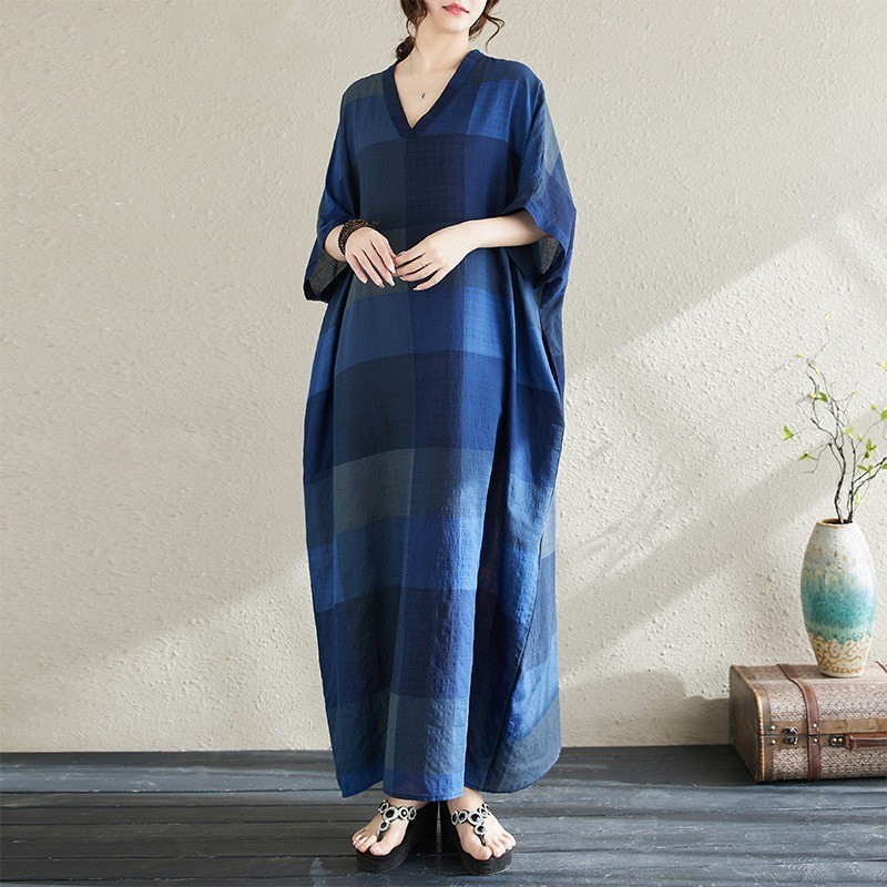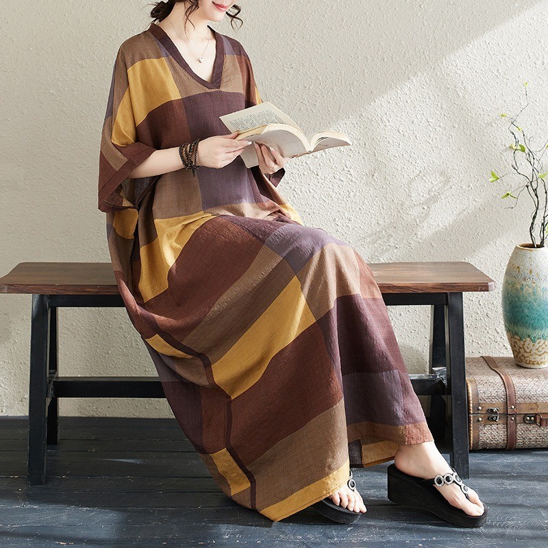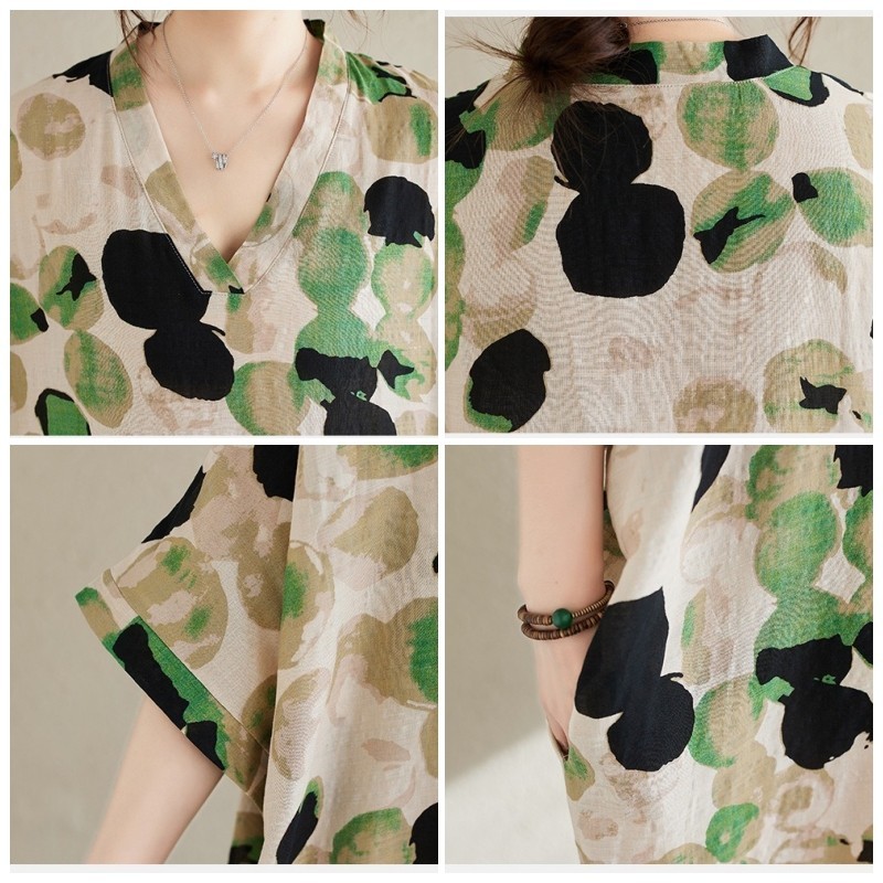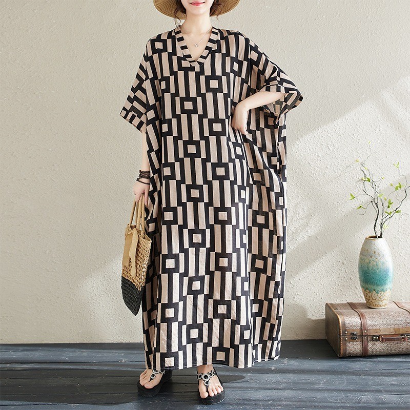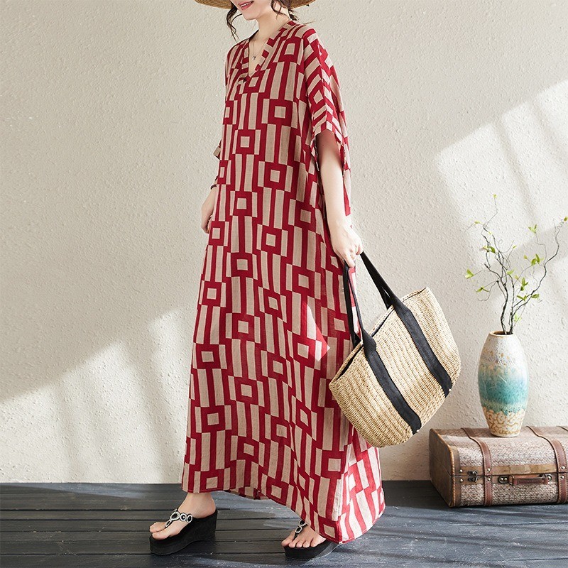 Đầm Maxi Nữ Mùa Hè 3 / 4 Tay Vải Lanh Cotton Oversize In Hoa Đi Biển Ngày Lễ Cổ Chữ V Dài
