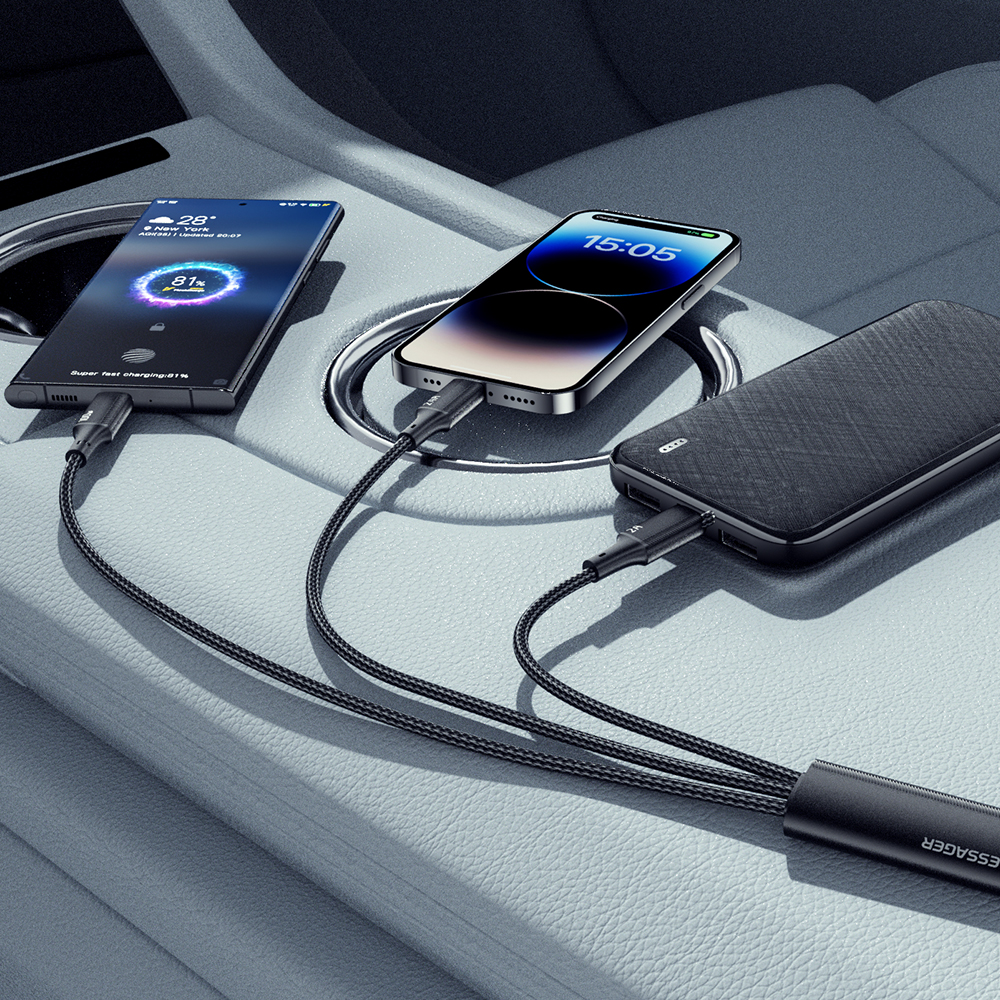 Essager 7A 100W 3 trong 1 Cáp USB Type C Micro Iph Cắm Dây Cho Max SamsungXiaomiHuawei Mate 60 Pro Dây Dữ Liệu Điện Thoại Di Động