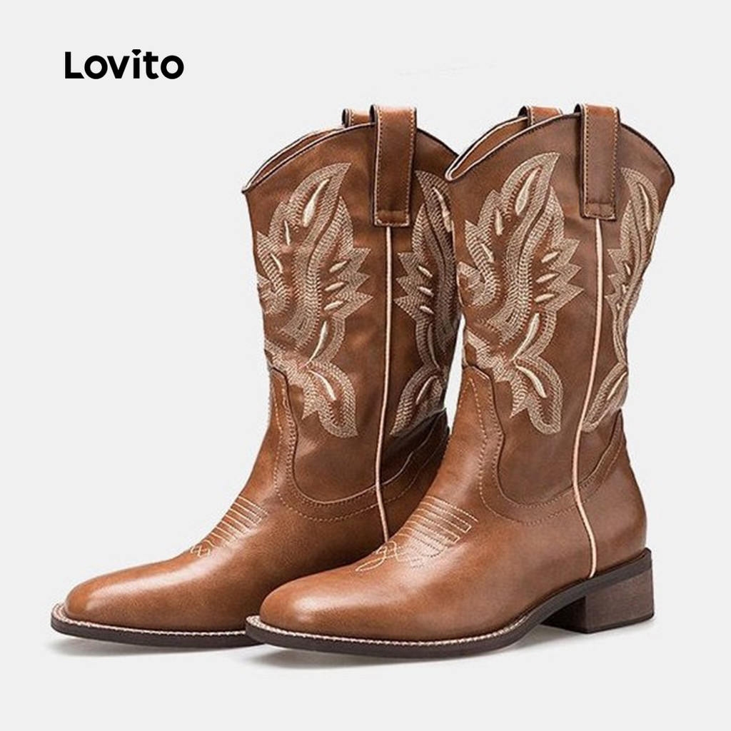 Giày cao bồi phương Tây trơn giản dị Lễ hội âm nhạc Thêu Hiệp sĩ Ống giữa Giày bốt thời trang dành cho nữ LFA79038