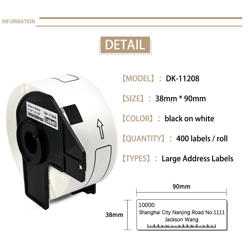 Băng Keo Dán DK11208 DK-11208 D3 x 80000 Chuyên Dụng Chất Lượng Cao | Cuộn 400 Nhãn Dán 400 Nhãn Hiệu Tiện Dụng | Phụ Kiện Chuyên Dụng Cho Anh Em P-touch QL 500A 500BW 560P 570 700 800 1050N