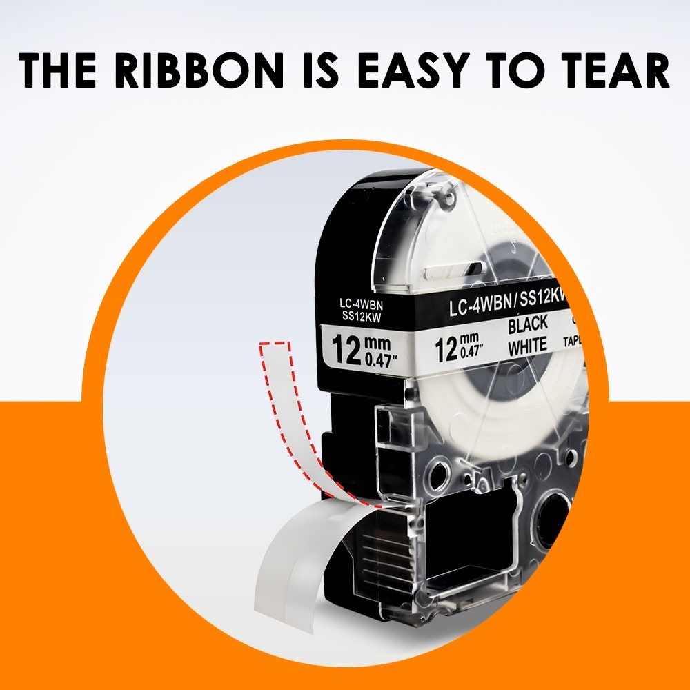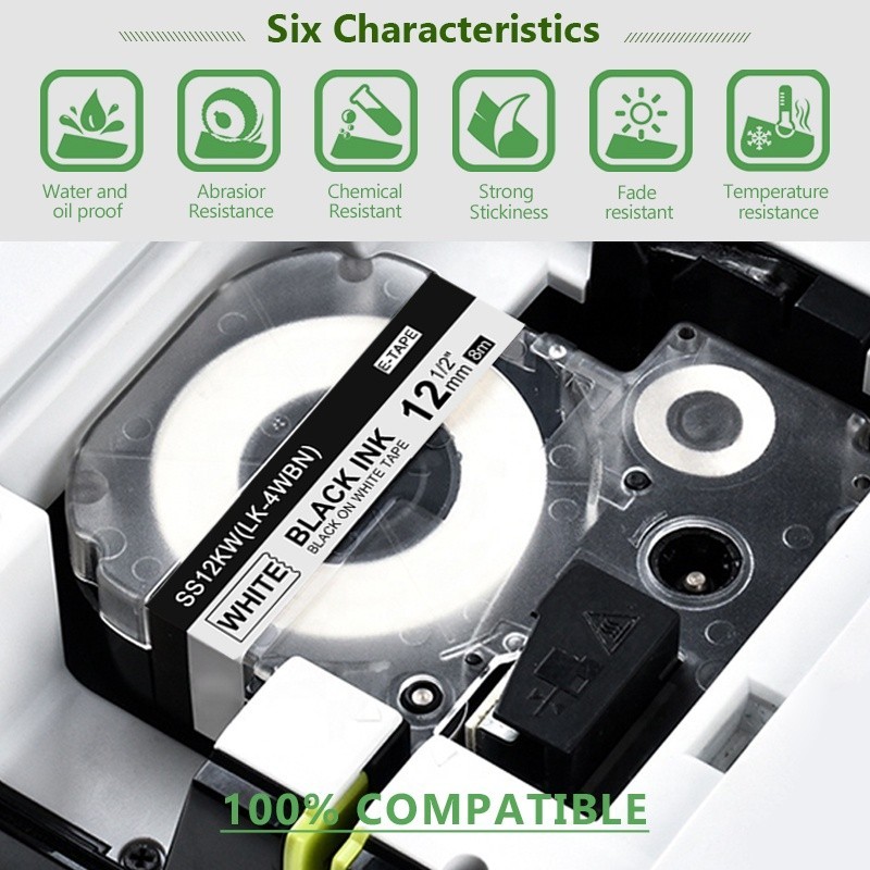 6 / 9 / 12mm SS12KW LC-4WBN Nhãn Băng 12mm Nạp Lại Tương Thích Cho Máy In Nhãn EPSON LabelWorks / KingJim TepraPro LW-300 LW-400 LW-500 LW-600P LW-700 SR-R7900P SR3900C SR530