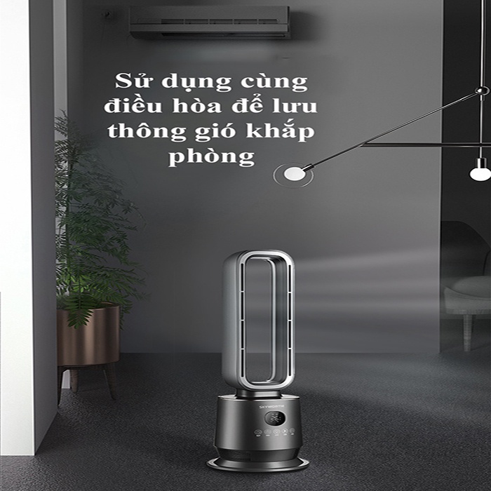 Quạt sưởi 2 chiều SƯỞI + MÁT SKYWORTH, quạt không cánh có điều khiển TỪ XA an toàn cho trẻ, không ồn