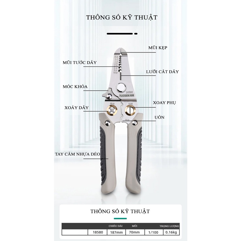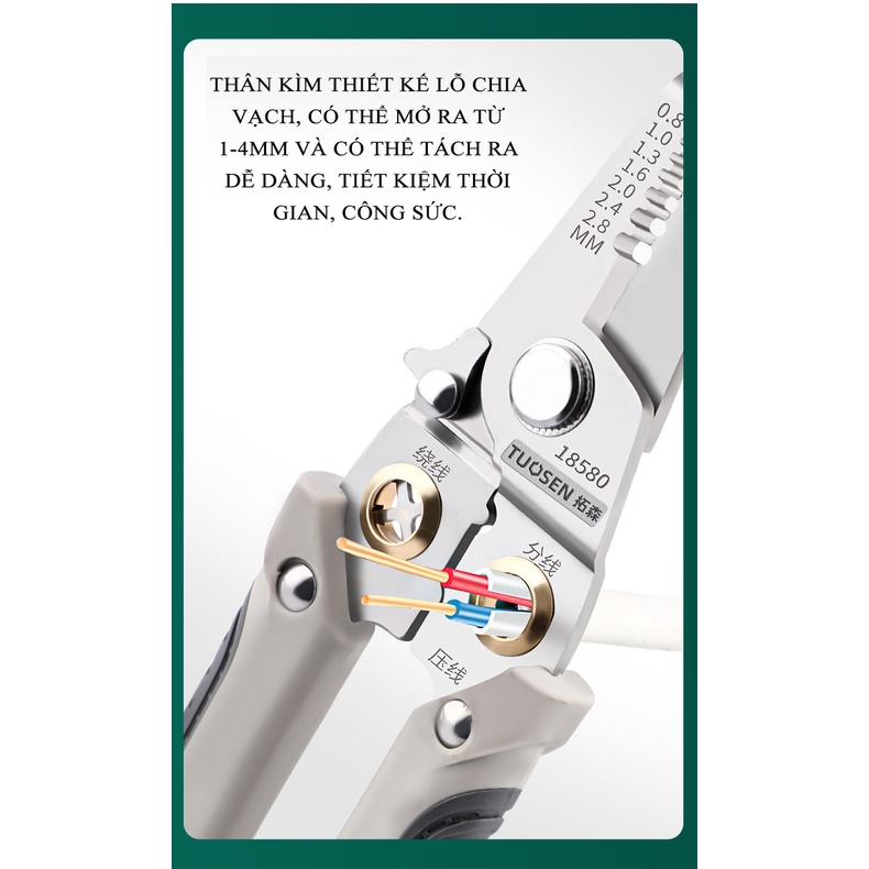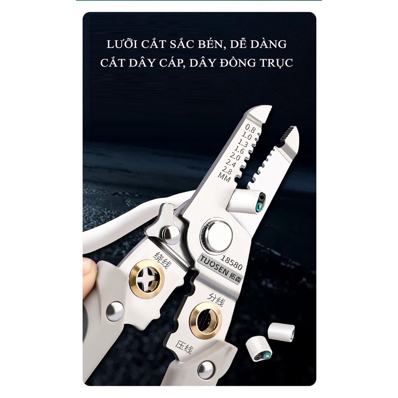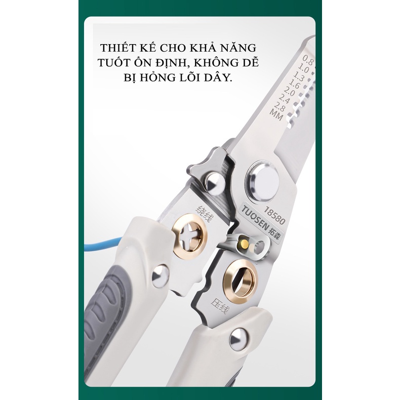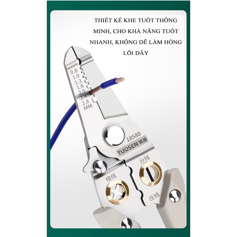 Kìm tuốt dây thợ điện đa năng mẫu mới 18580 - Một sản phẩm của Tuosen