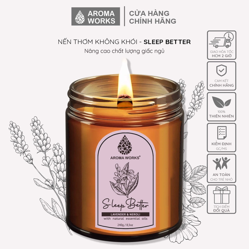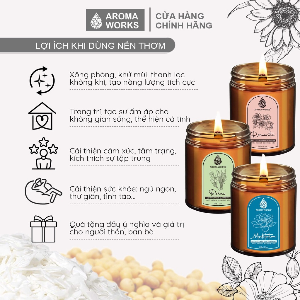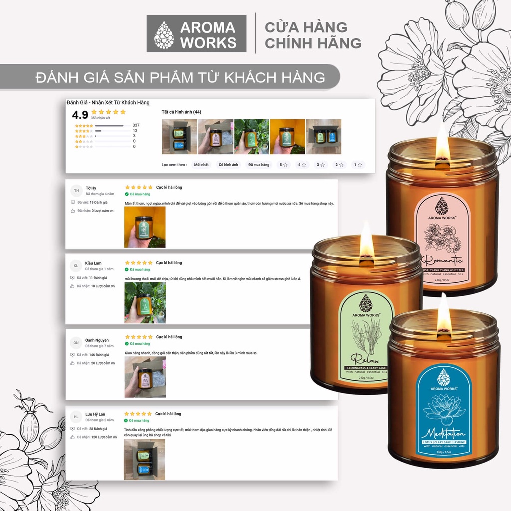 Nến thơm Spa Aroma Works liệu pháp mùi hương giúp dễ ngủ, thư giãn, thoải mái 240g