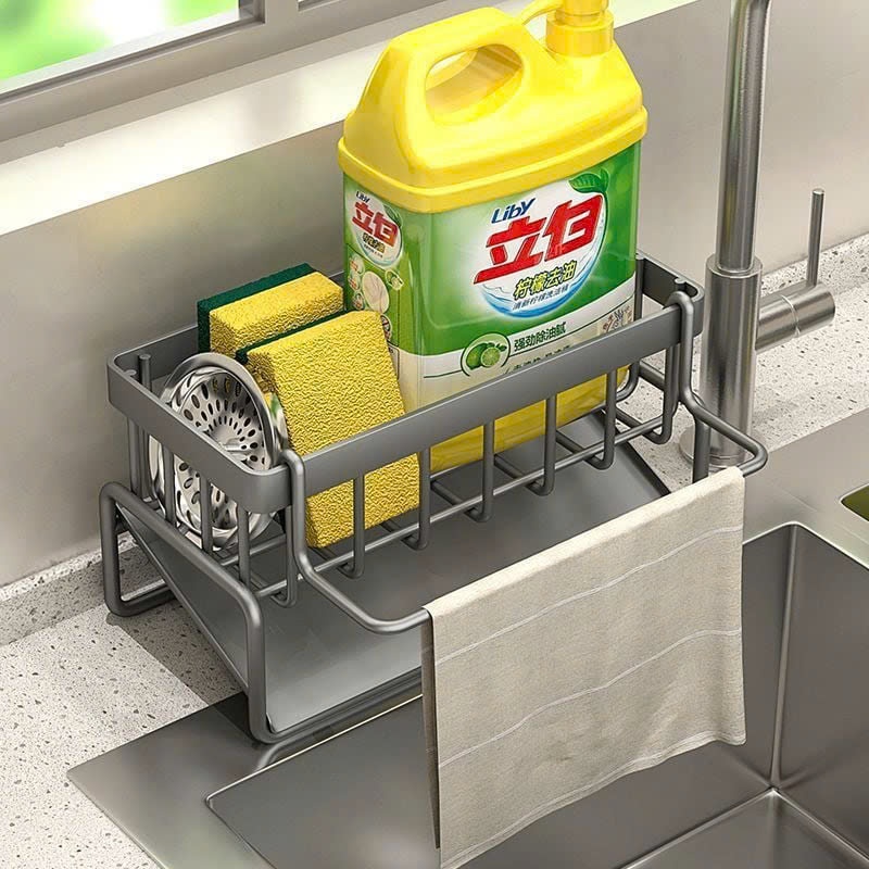 Giá để đồ rửa chén bát - giá để giẻ rửa chén trên bồn có khay hứng nước nghiêng - kệ để miếng rửa chén