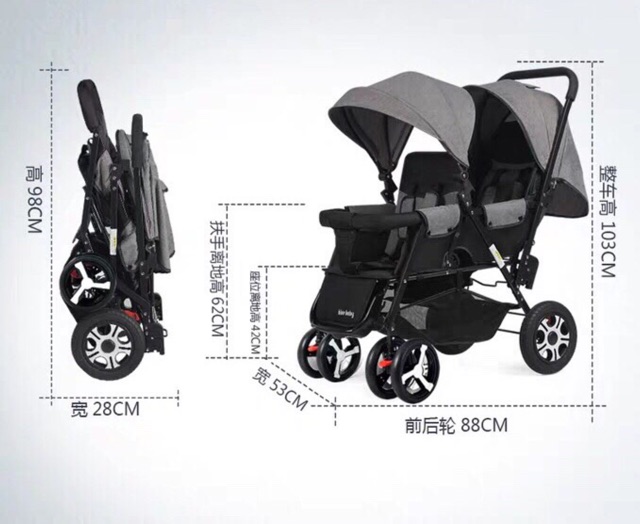 Xe Đẩy Đôi Cho Bé BLUBABY ( Có Thể Gấp Gọn Được Nằm Ngồi Nhiều Tư Thế )Sẵn Hàng