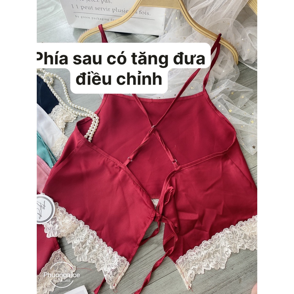 Đồ ngủ sexy, bộ ngủ yếm quyến rũ chéo lưng gợi cảm phối ren- Phuongaliceshop