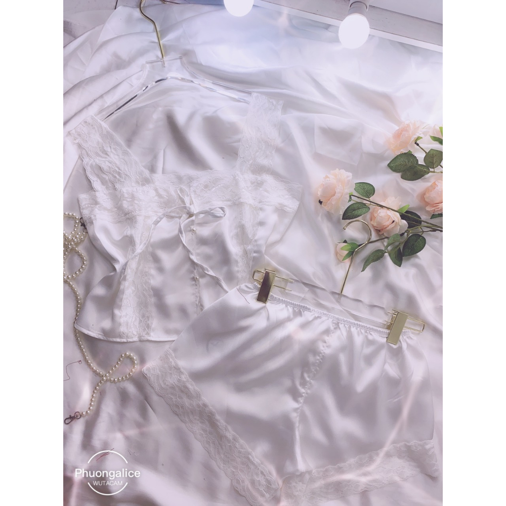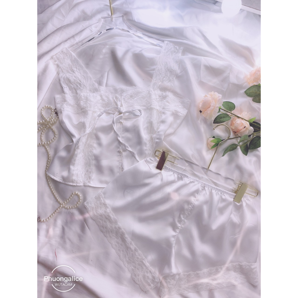 Đồ ngủ sexy nữ, bộ ngủ sexy ren quyến rũ gợi cảm đính ngọc chất satin- Phuongaliceshop