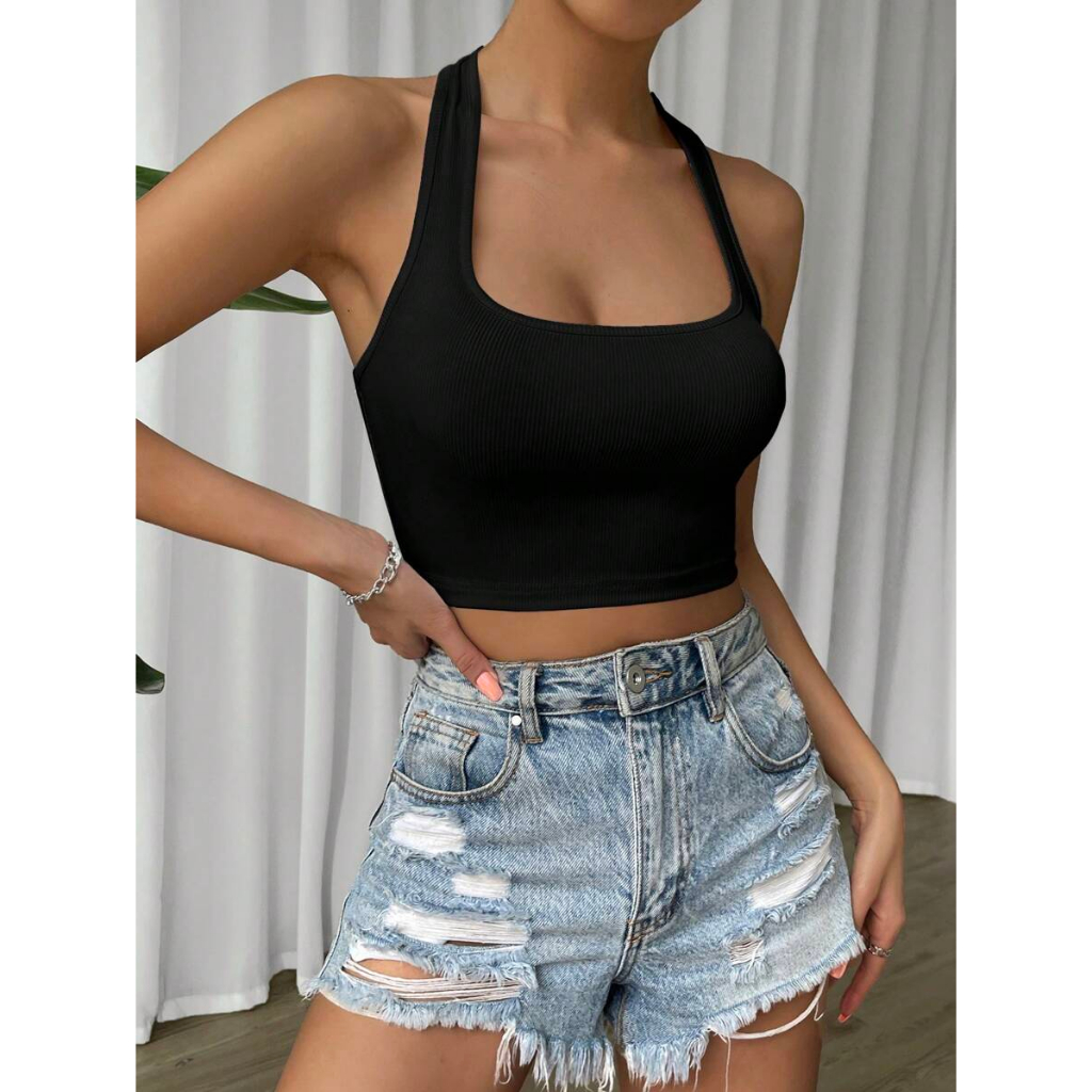 Áo croptop nữ cổ yếm JUNE.SG áo hở lưng nữ cổ yếm áo croptop hở lưng D036