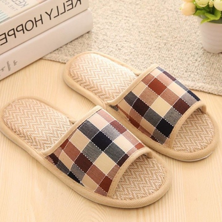 Dép lê nữ nam đi trong nhà phong cách Hàn Quốc, Dép vải kẻ caro đi văn phòng đế xốp siêu nhẹ, siêu êm DU3