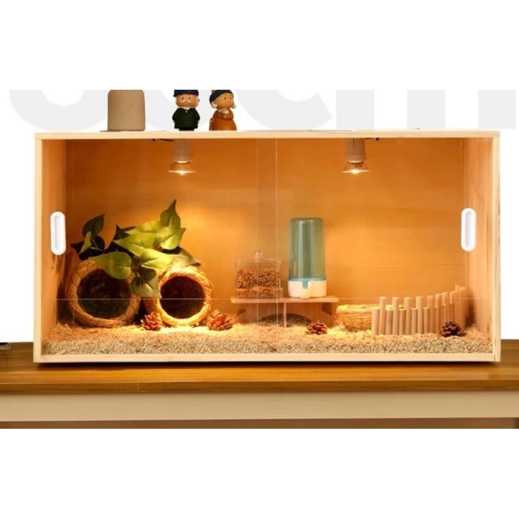 [CÓ SẴN] Chuồng Lồng Chuột Hamster Gỗ Mica Hình Ngôi Nhà 40cm 50cm 60cm Không Phụ Kiện