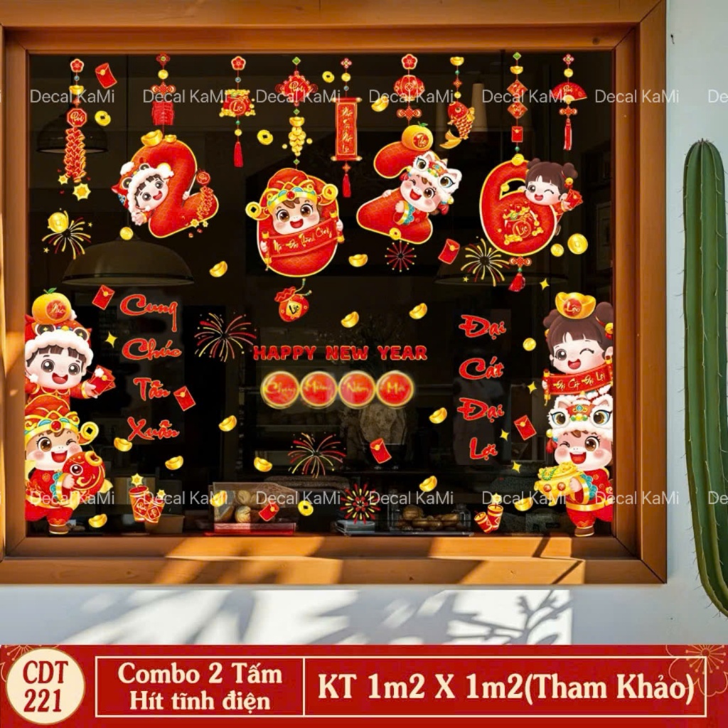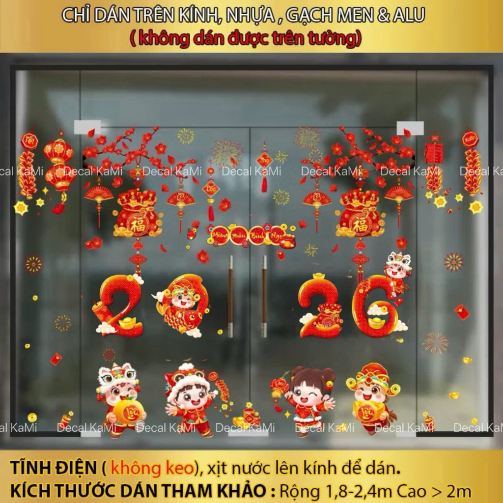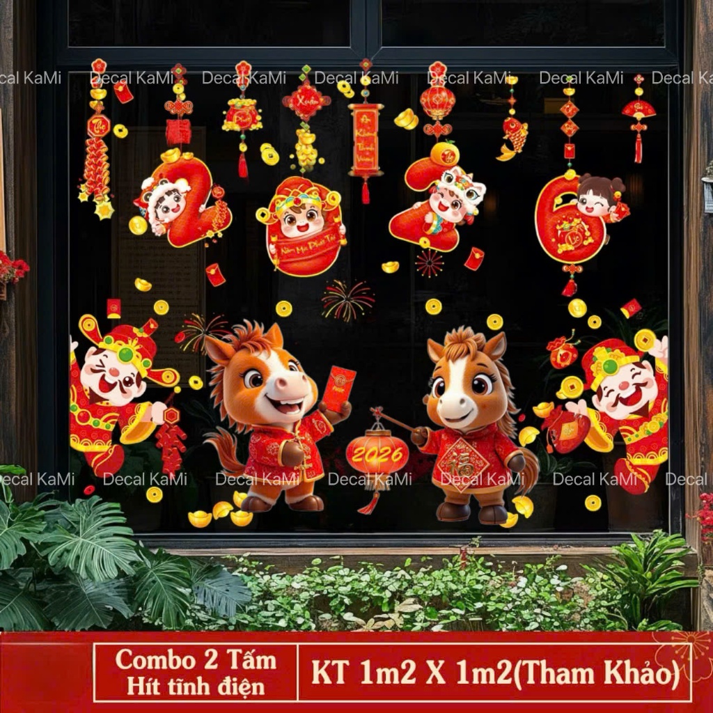 [HOẢ TỐC HCM] - Decal tết 2026 BÍNH NGỌ dán cửa, dán kính 2 mặt