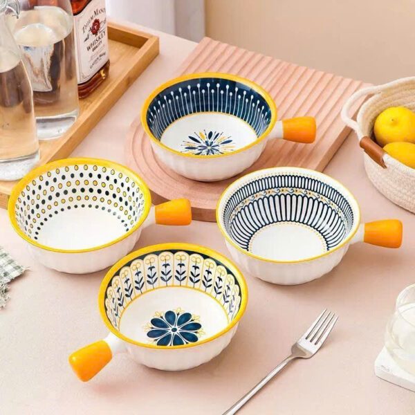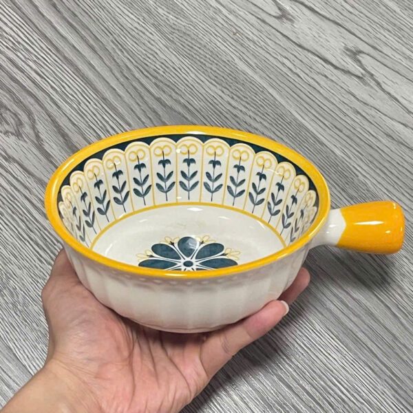 Chảo sứ thổ cẩm, bát có tay cầm, chảo sứ hoa văn decor, Tô sứ có tay cầm, Thố sứ thổ cẩm có tay cầm hoa văn, Tô sứ xinh