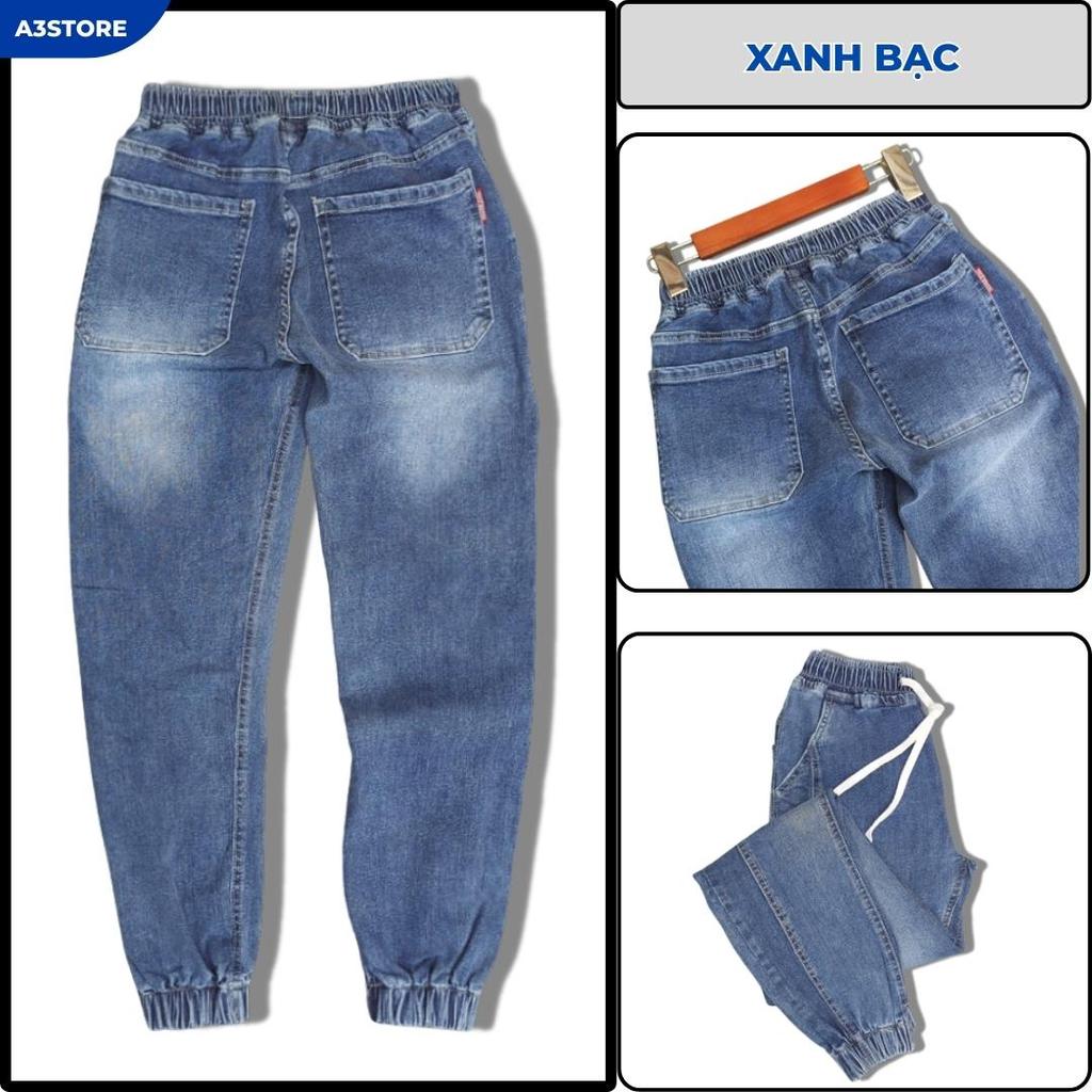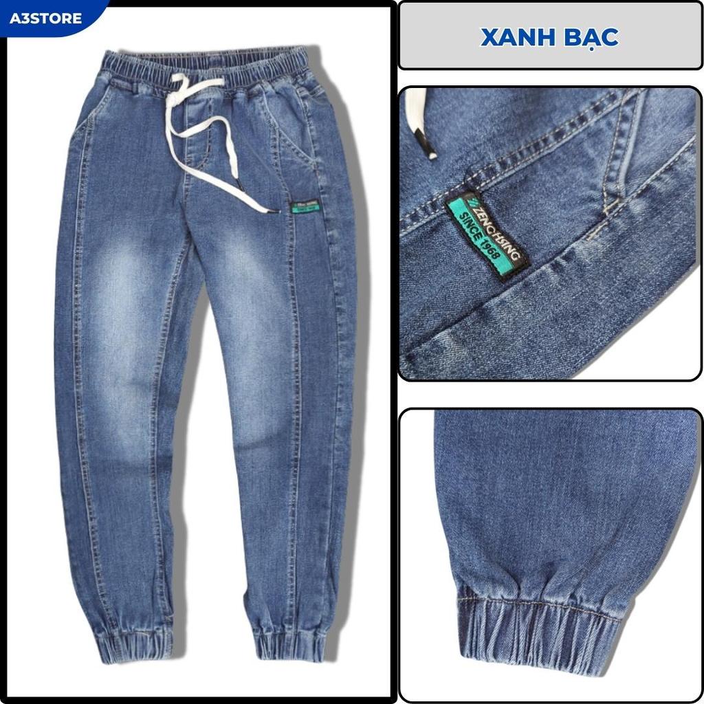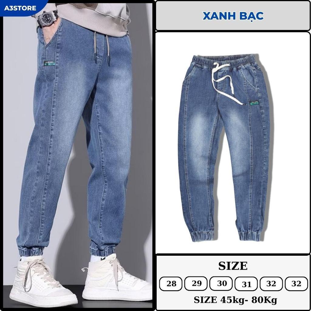 Quần Jogger Jean Nam Màu Xanh Bạc Lưng Thun Bo Lai Thể Thao A3Store Chất Liệu Jean Cotton Thoáng