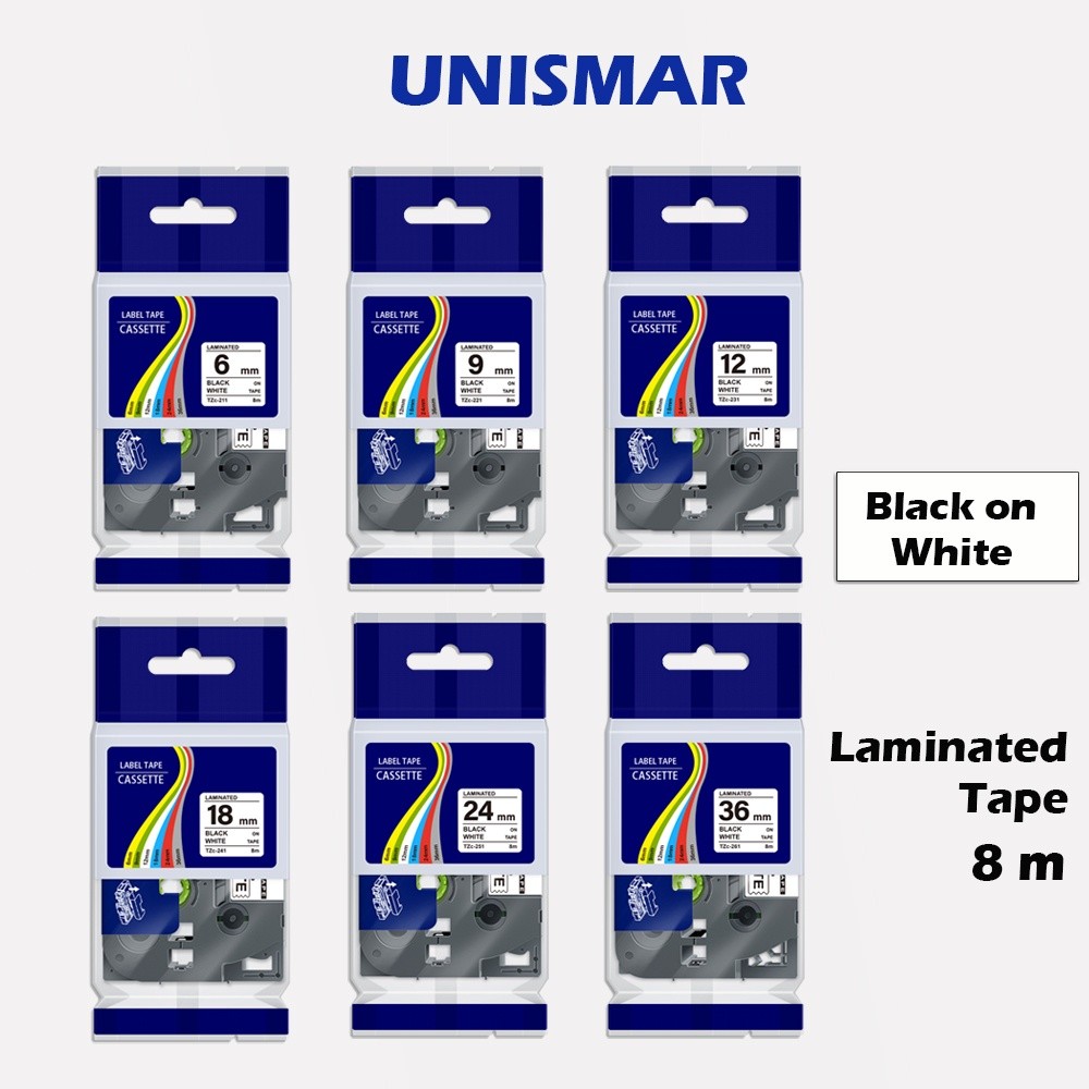 【 6 / 9 / 12 / 18 / 24 / 36mm 】 Băng nhãn TZe / TZ - Đen trắng, Tương thích với máy in nhãn Brother Băng tạo nhãn P-touch cho máy nhãn PT-H110 H105 H107B H108 P300BT CUBE D210
