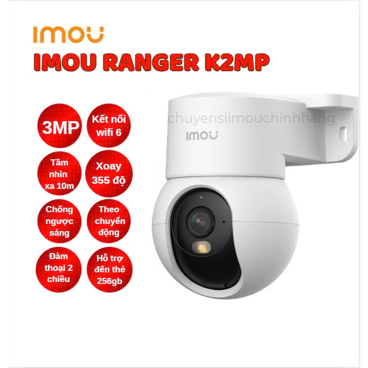 Camera IMOU trong nhà Ranger K2MP 3MP/5MP, Tích hợp chân đế gắn tường, quan sát ban đêm thông minh, Bảo hành 2 năm