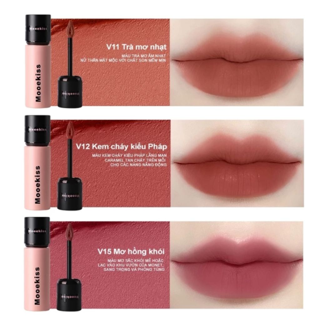 Son Kem Bùn MOOEKISS Velvet Lip Mud Ẩm Mịn, Che Phủ Cao, Làm Mờ Vân Môi 3g