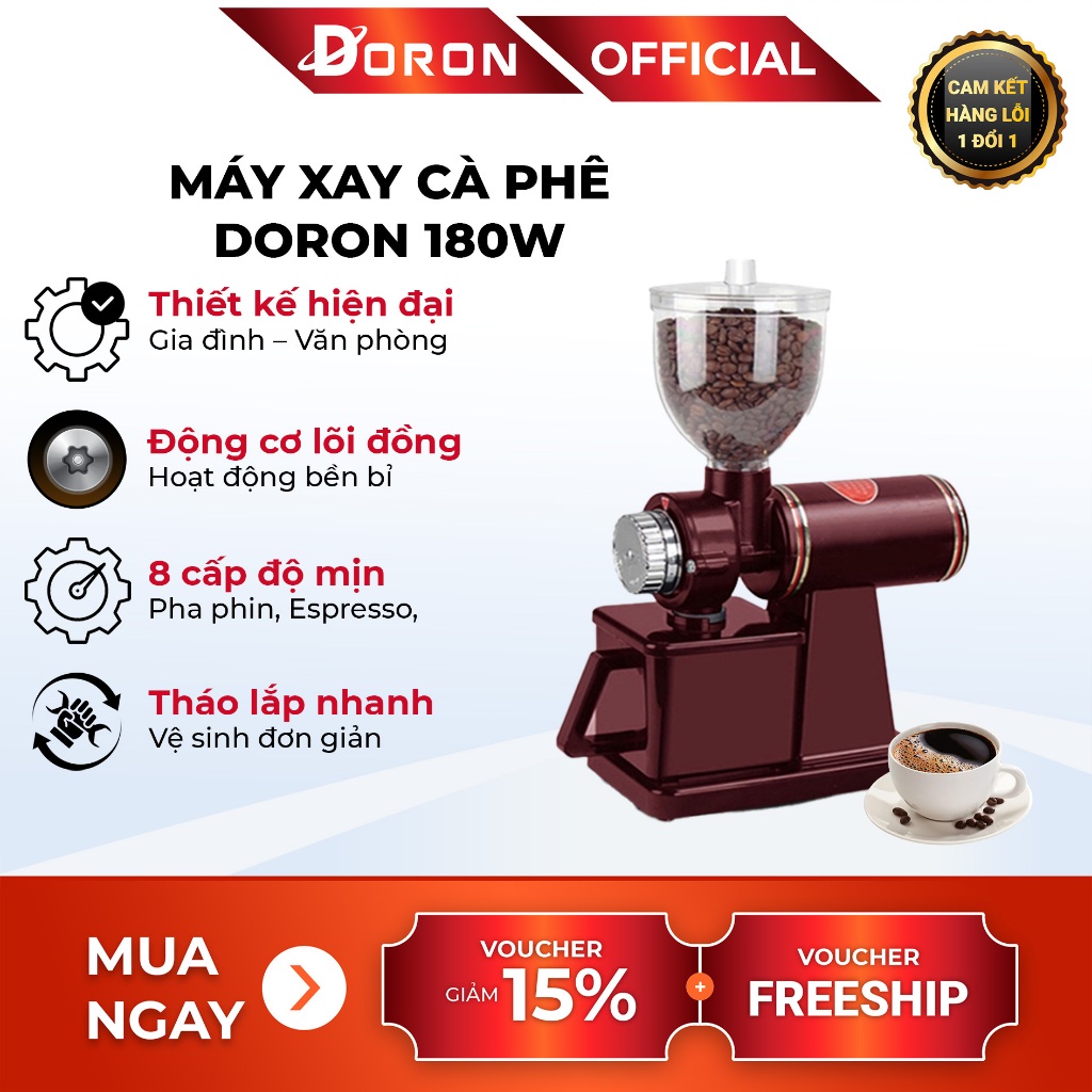 Máy xay cafe siêu mịn DORON 180W màu sấc hiện đại, kiểu dáng sang trọng