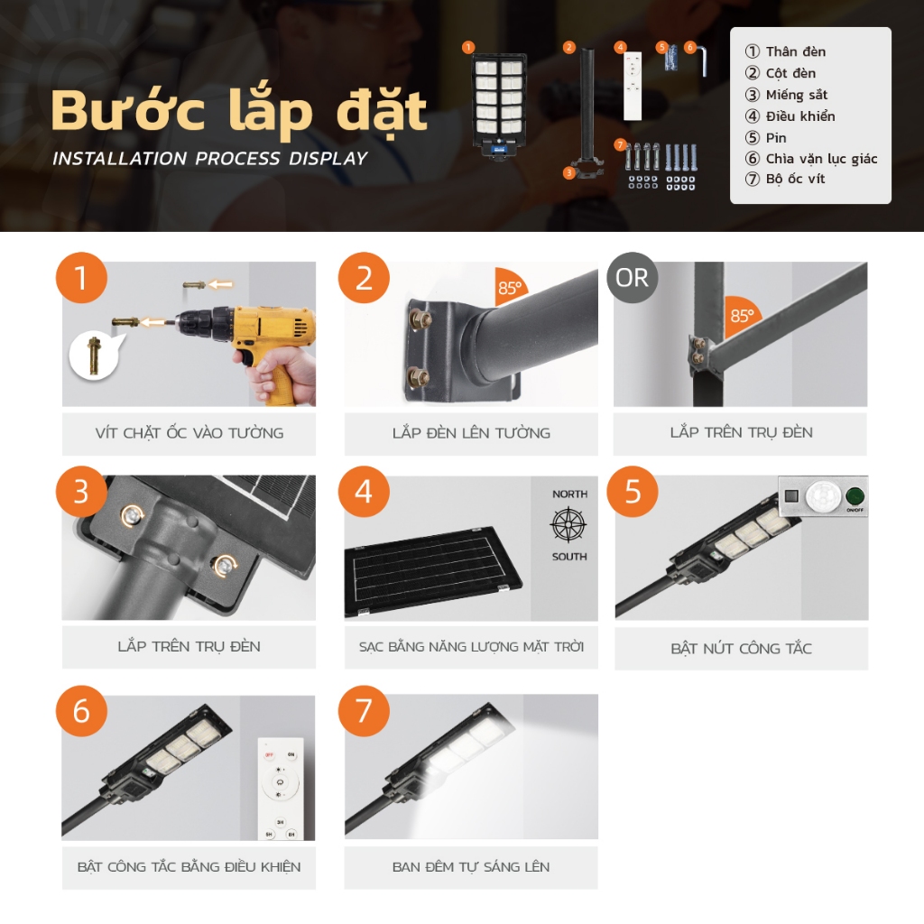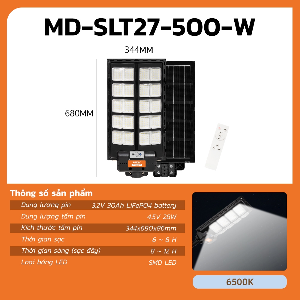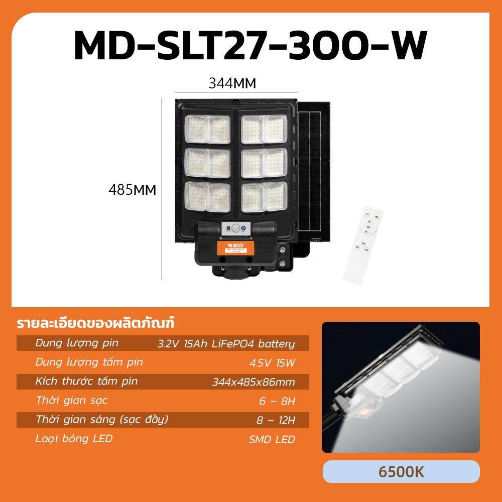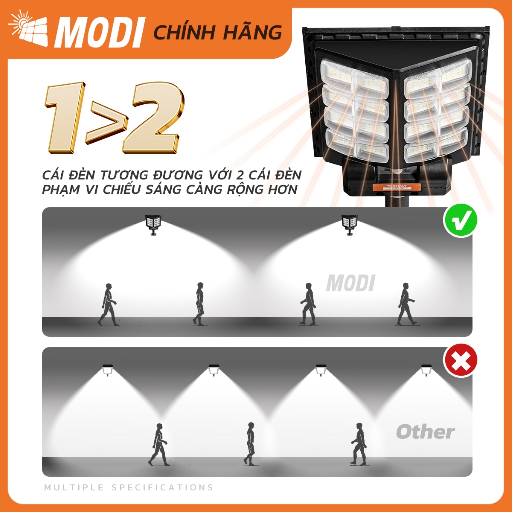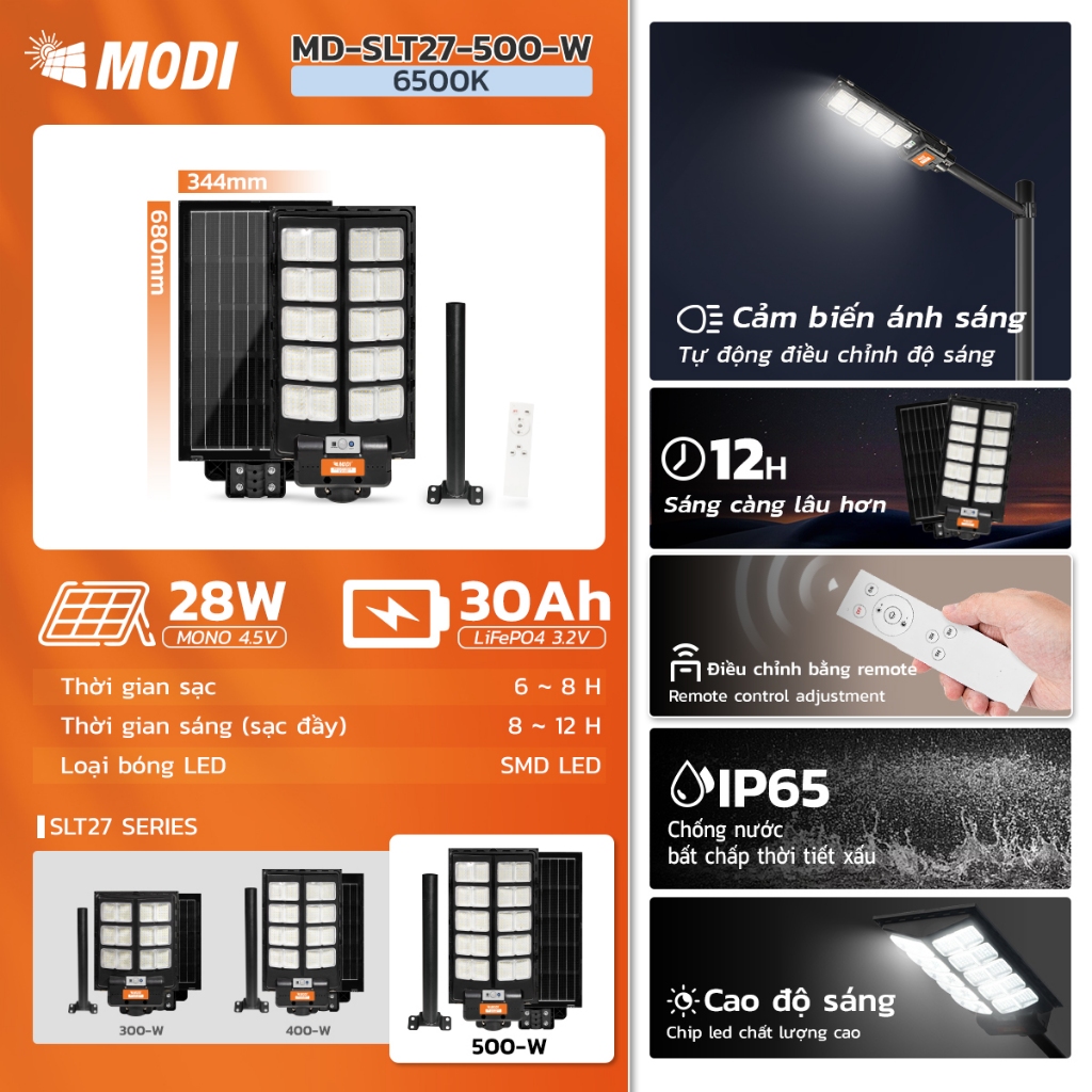 Đèn Năng Lượng Mặt Trời Liền Thể, Đèn Cao Áp Cảm Biến MODI SOLAR Chống Nước Loại 300W, 400W, 500W